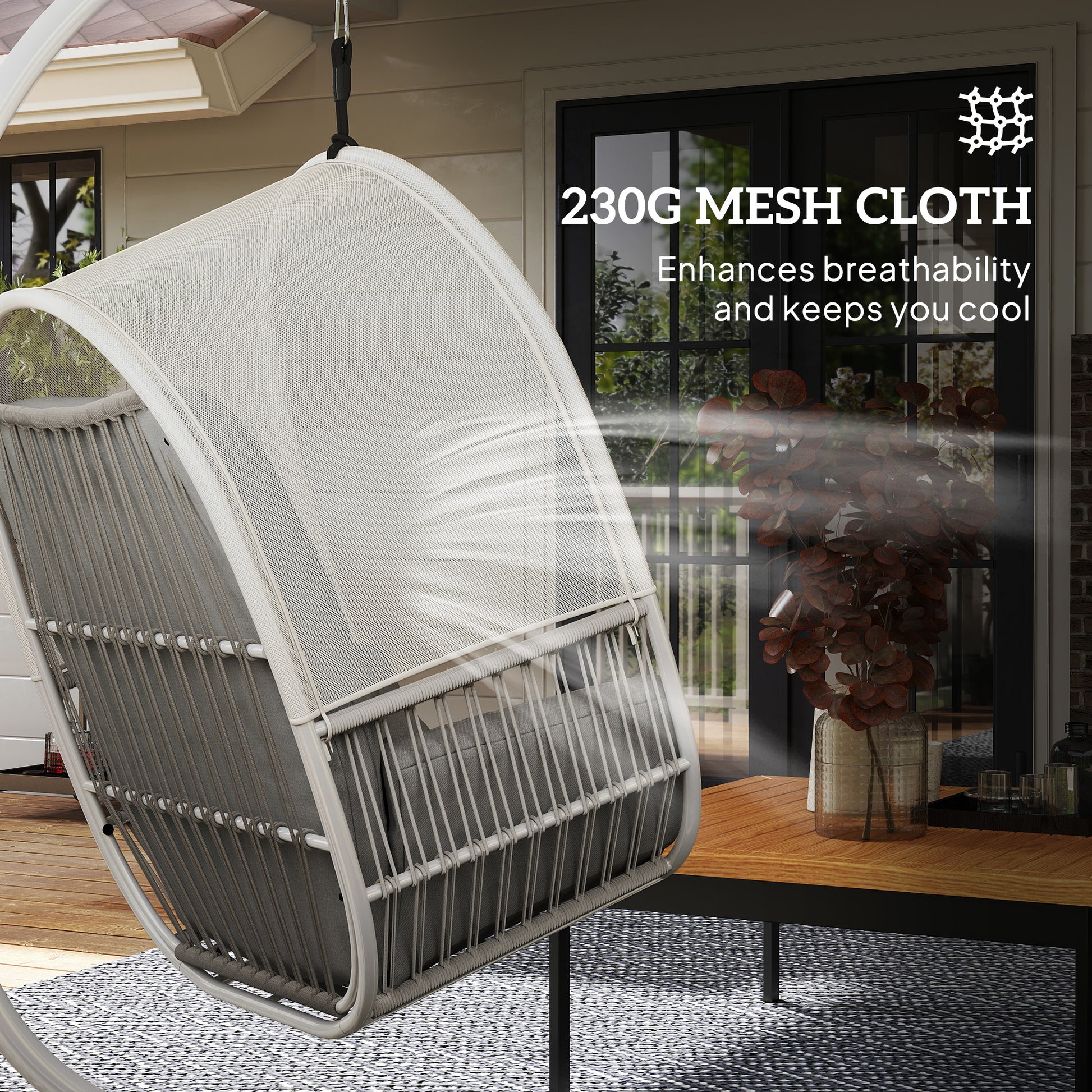Outsunny Hanging Egg Chair Outdoor Indoor, Swing Hammock Chair with Stand, Cushions, Lumbar Pillow, Adjustable Height and Steel Frame for Garden Patio Lounge Porch, Light Grey