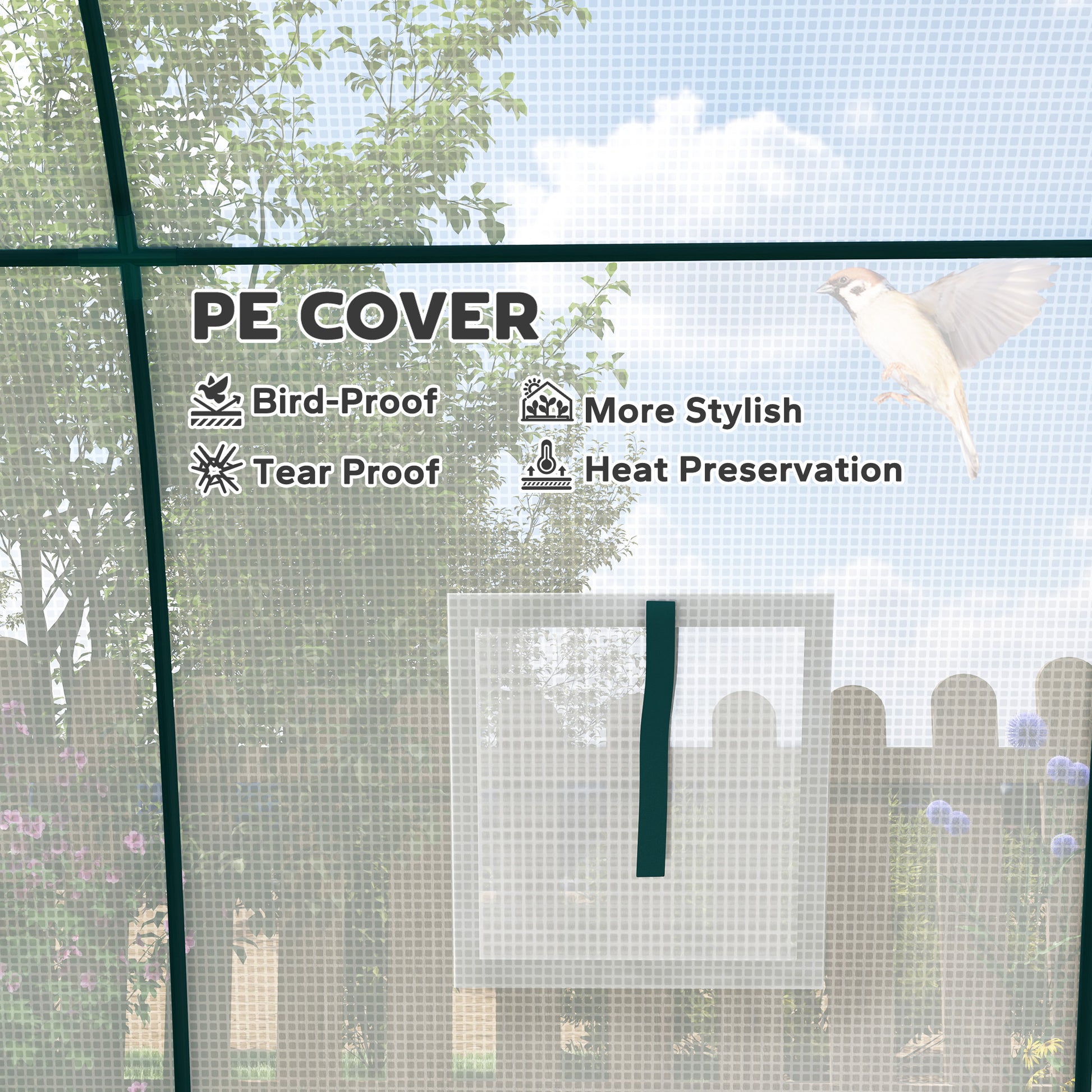 - PE cover with hemmed edging to resist tearing