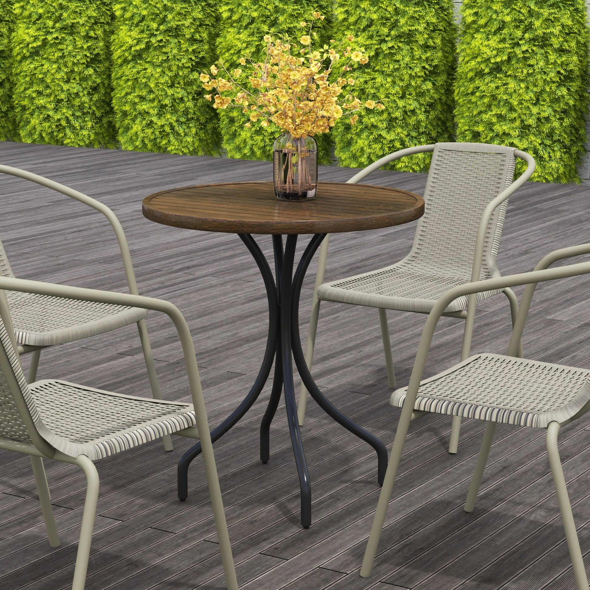 Enhance your outdoors with this Outsunny end table. Slatted tabletop is stylish and practical, preventing water building up and quick drying. The galvanised steel frame, with a powder-coated finish, means a strong and supportive core. This round garden table is suitable for plenty of occasions.