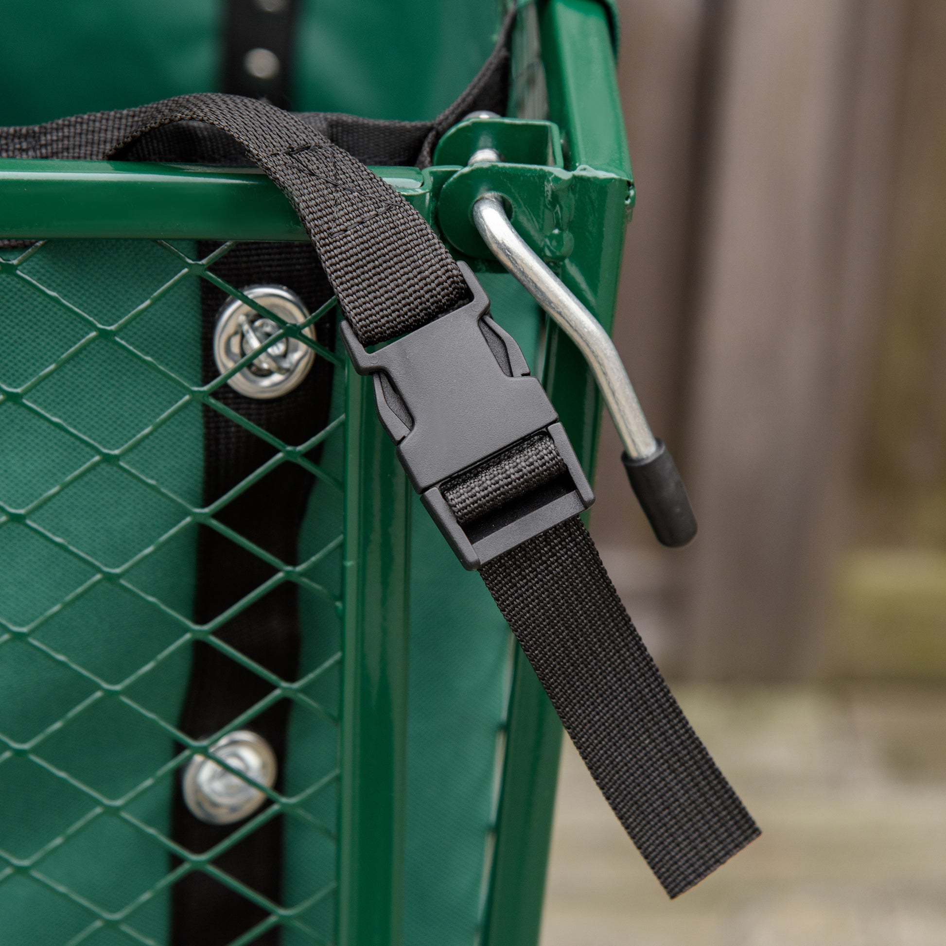 - Side panels can be opened with the quick-release mechanism, dropping down to load and unload
