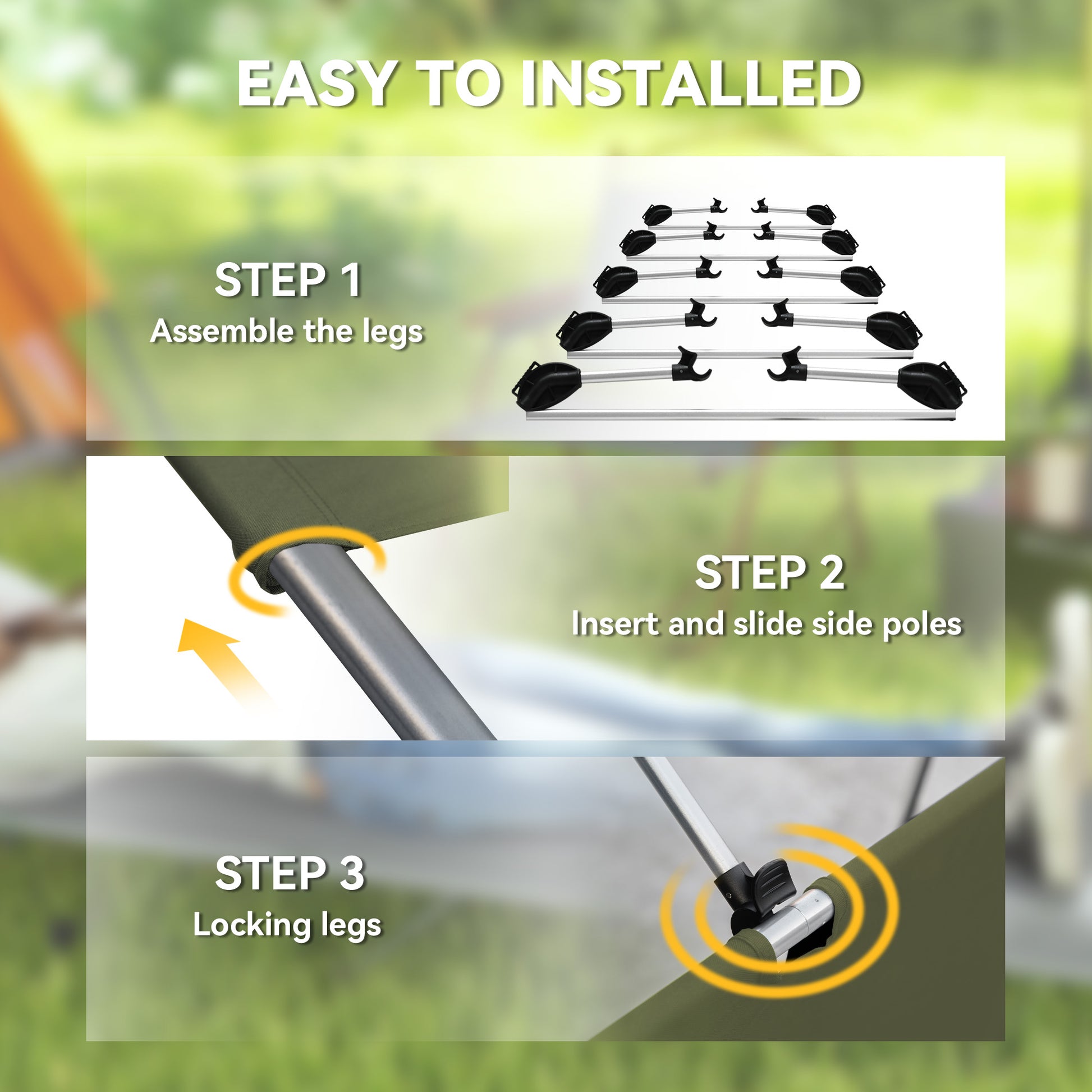 Sleeping when camping is never the great experience. Let's put an end to this, with the help of this Outsunny camping travel cot. A fully buildable design - comes with legs, side poles and top fabric - set up and take down, put in the bag and take with you wherever you want; makes being comfortable on camping trips ever so easy. The top fabric holds your body comfortably, the legs elevate you so you don't have to touch the ground.
