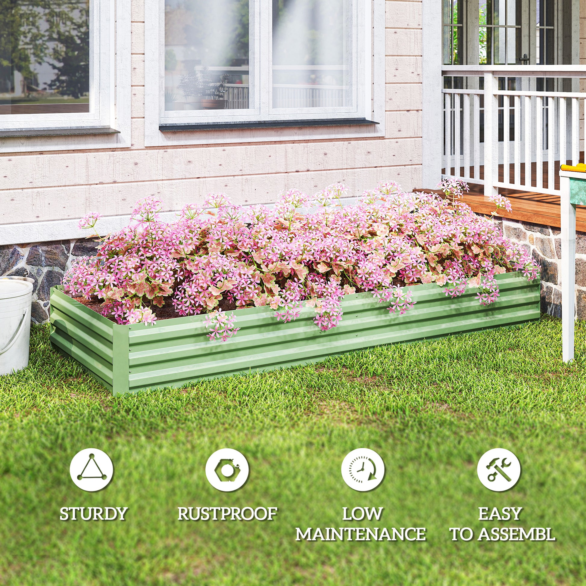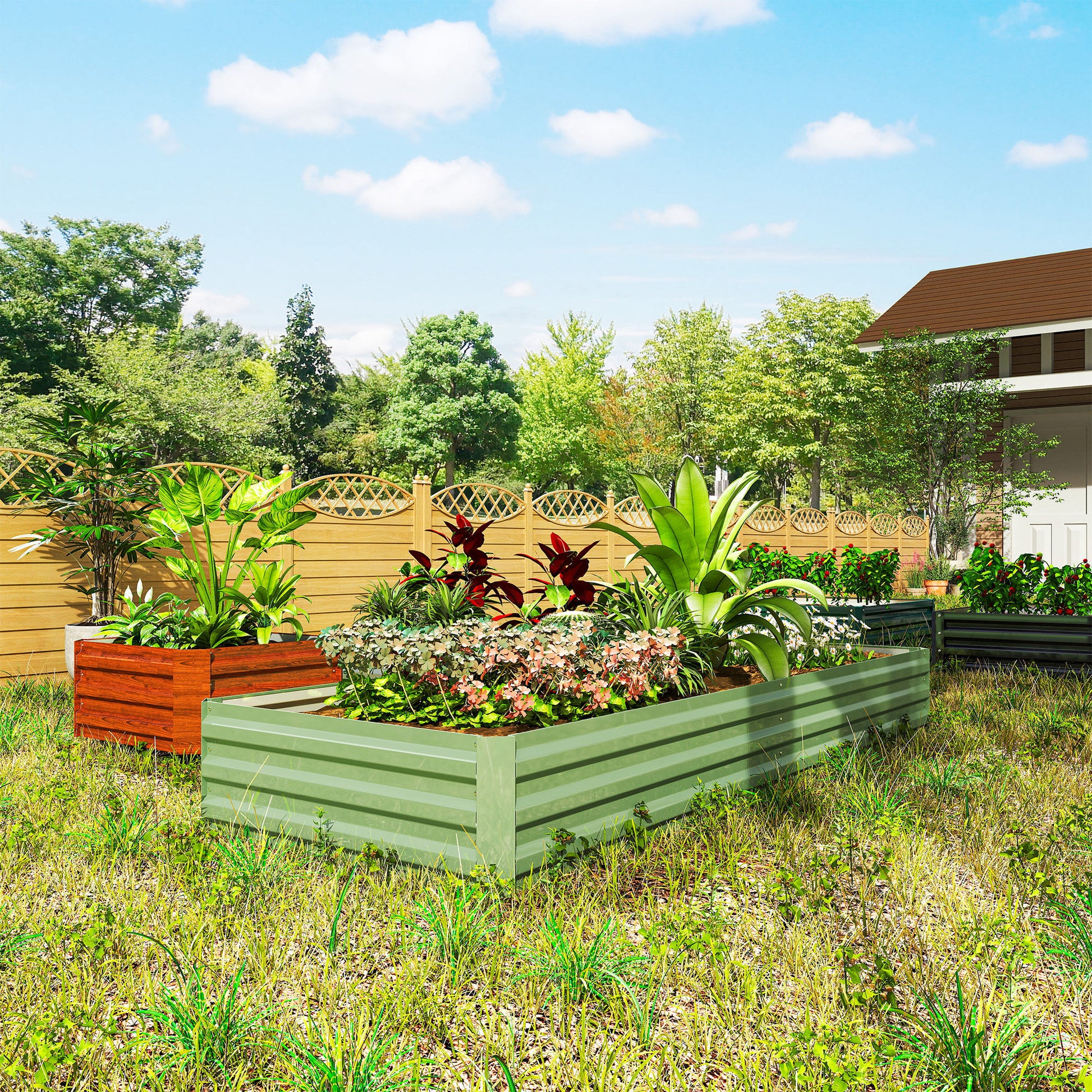 Outsunny Metal Raised Garden Bed Planter Box Outdoor Planters for Growing Flowers, Herbs, Green, Light Green