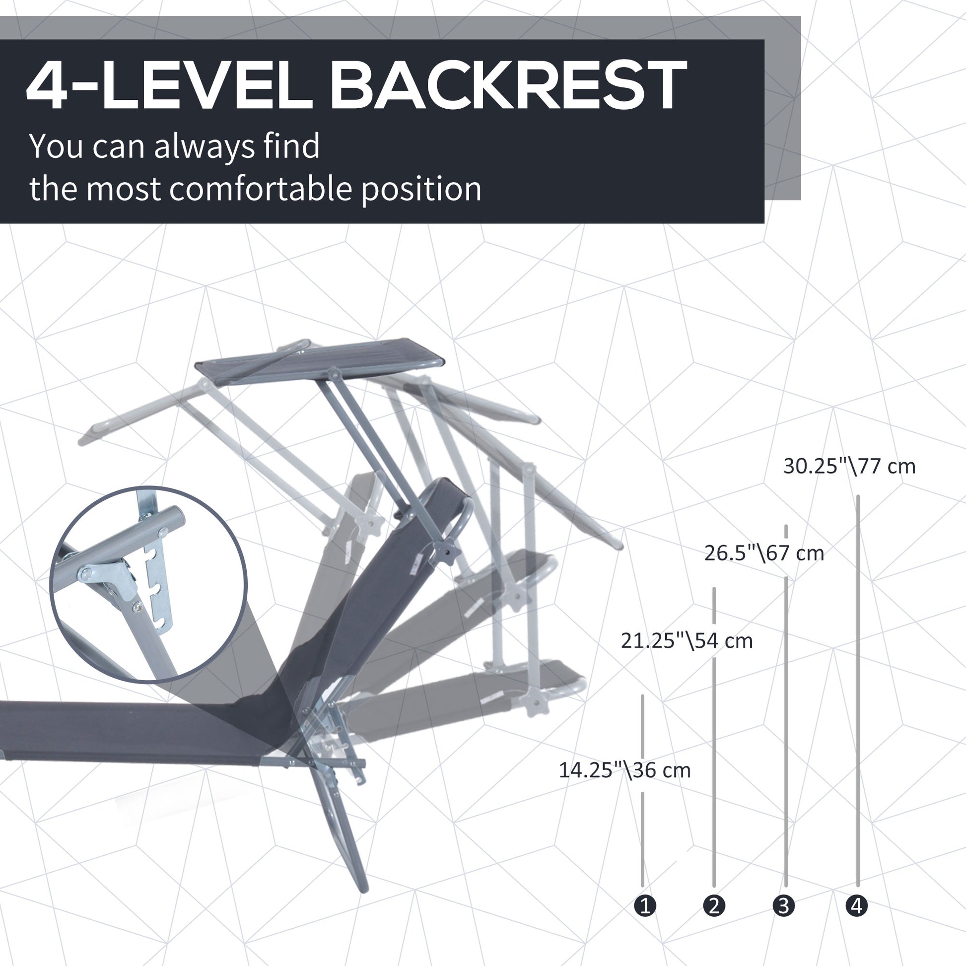 Outsunny Outdoor Foldable Sun Lounger, 4 Level Adjustable Backrest Reclining Sun Lounger Chair with Angle Adjust Sun Shade Awning for Beach, Garden, Patio, Grey