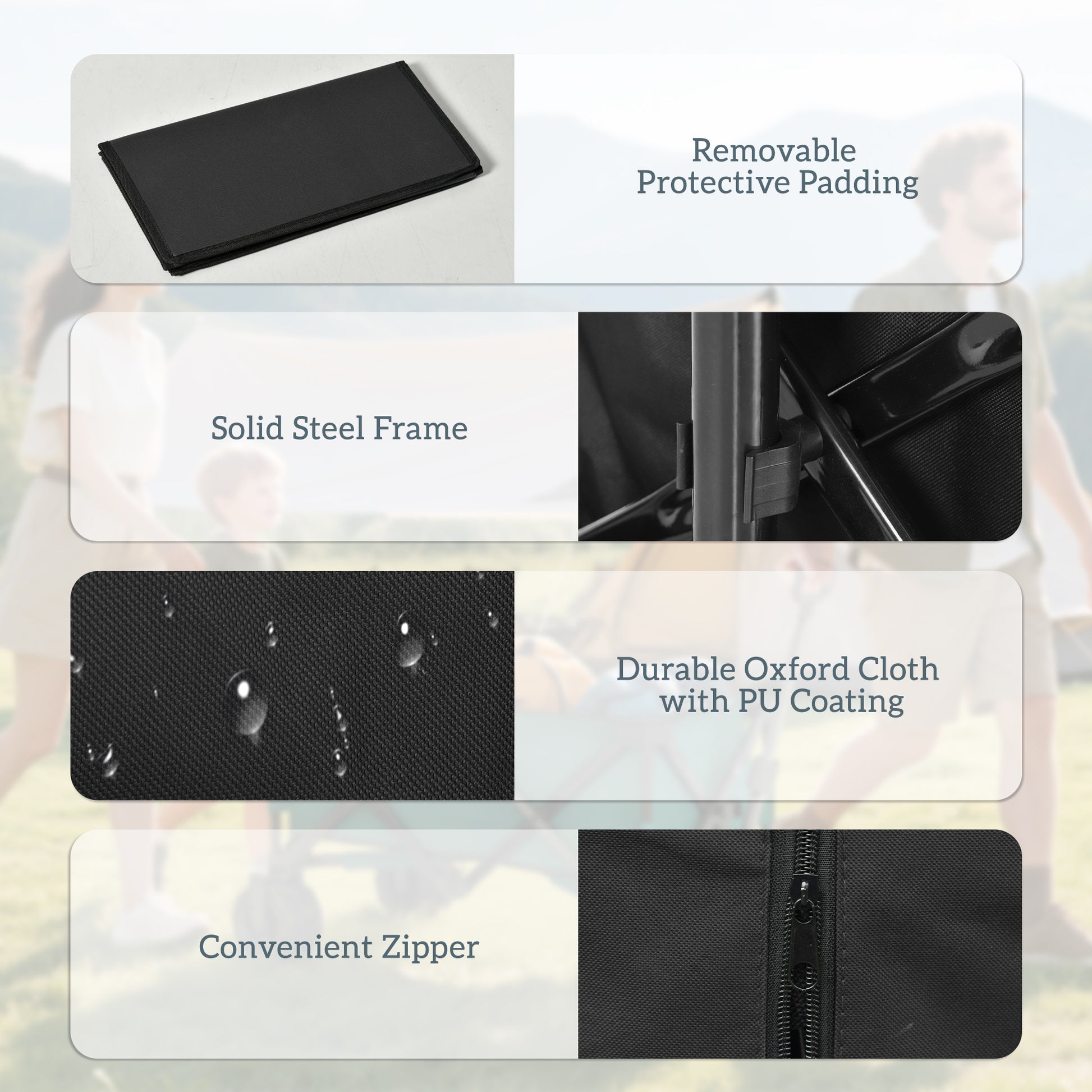 Outsunny Outdoor Folding Garden Trolley on Wheels, Capming Cargo Wagon Cart Trailer w/ Handle, Wheels for Beach Garden, Black