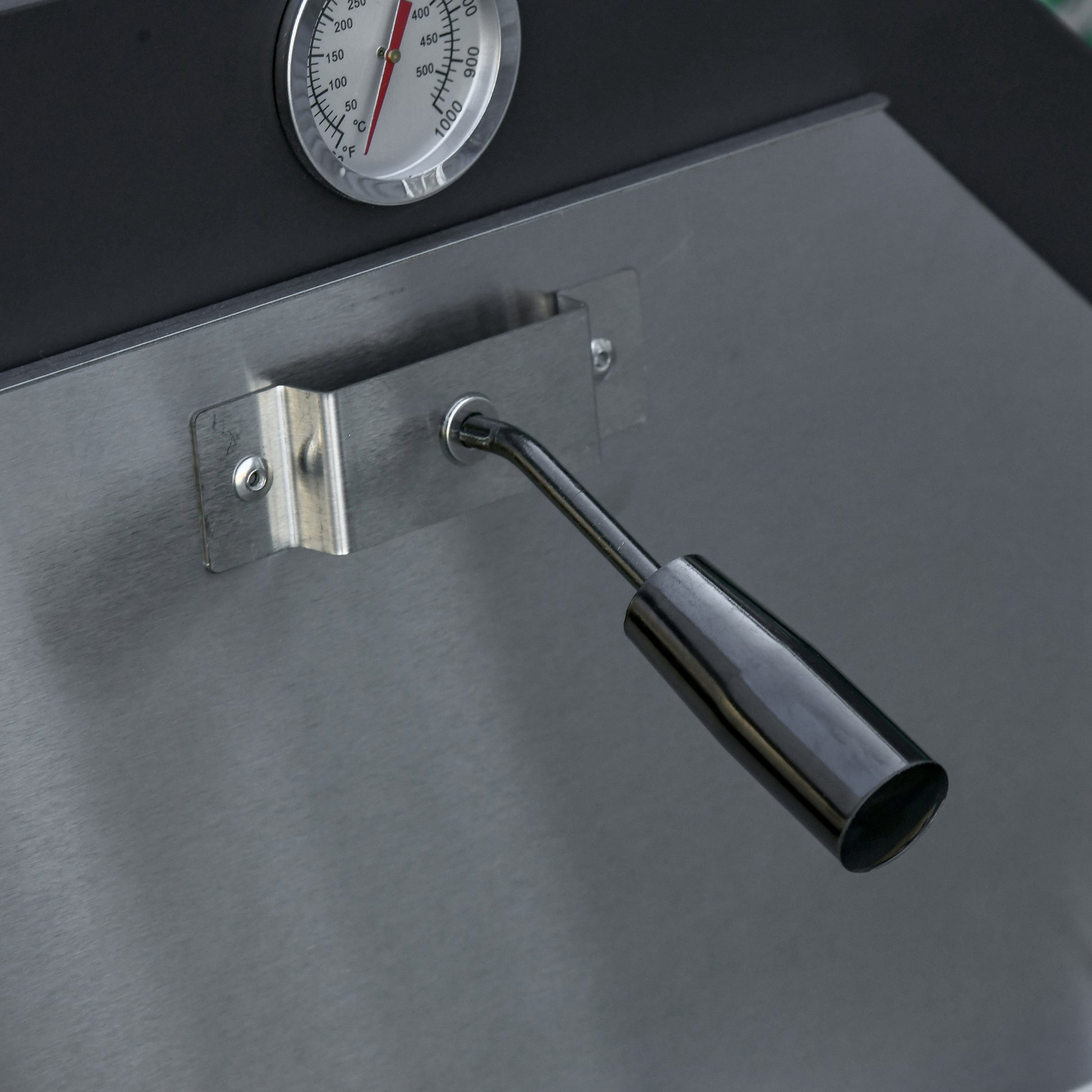 Outsunny Outdoor Garden Pizza Oven Charcoal BBQ Grill 3-Tier Freestanding w/ Chimney, Mesh Shelf, Thermometer Handles, Wheels Garden Party Gathering Stainless Steel Cooker