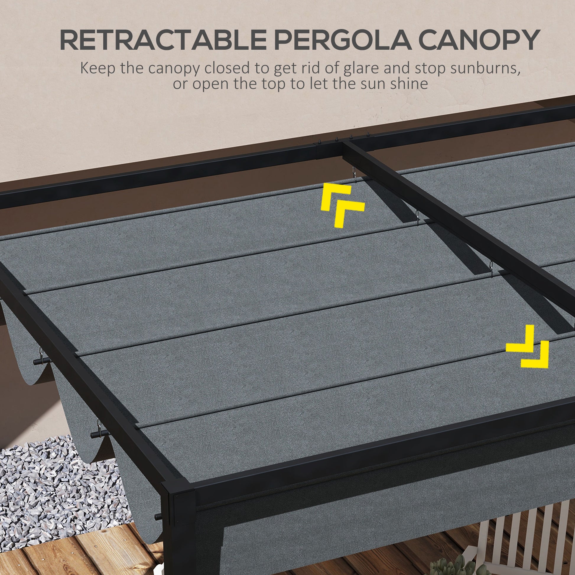 Outsunny Pergola Roof, Retractable Sun Shade Cover for 2.85 x 2m Pergola, UV30+ Protected, Dark Grey