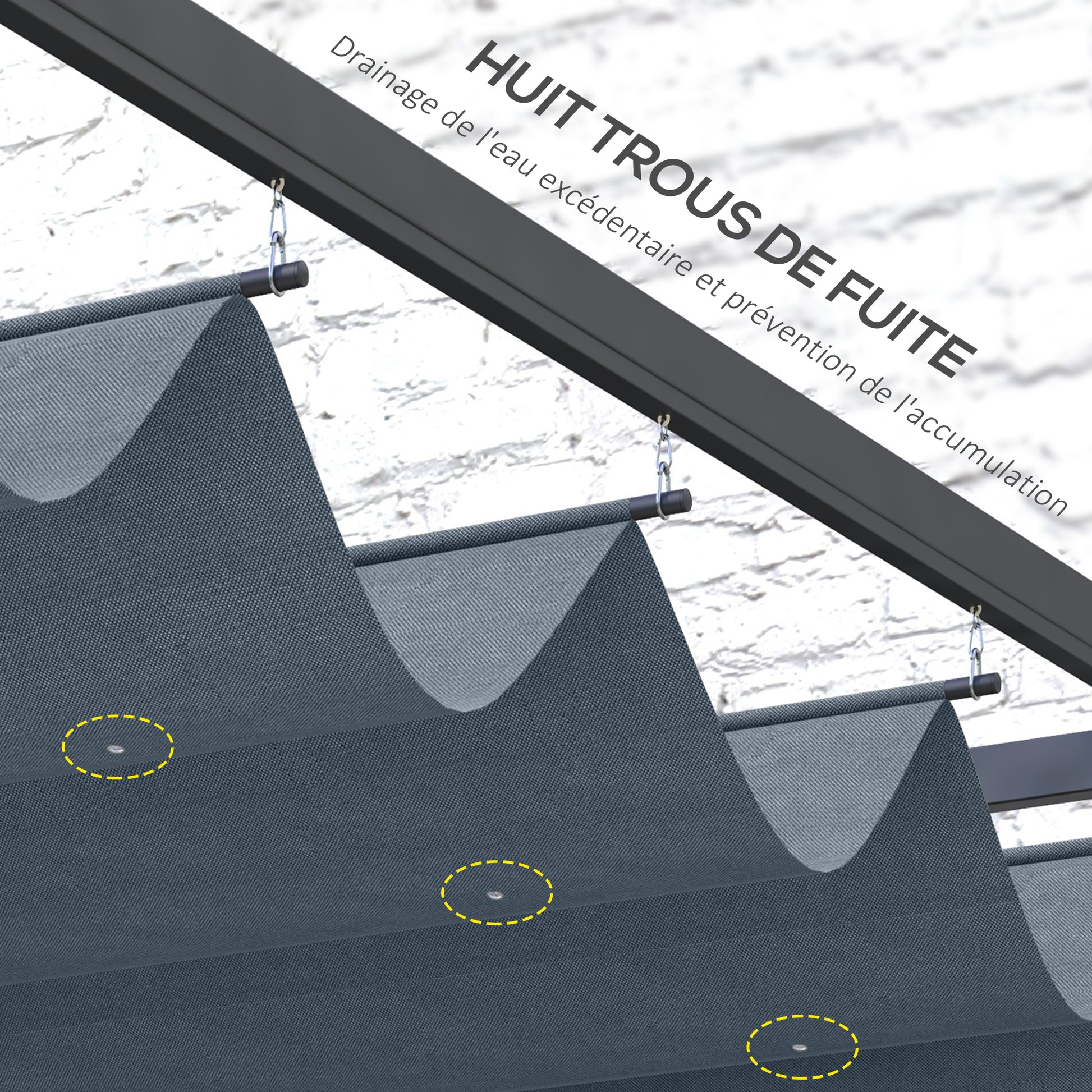 Bring your pergola back to life instantly - do it with this Outsunny replacement top. Polyester fabric makes it tough for lasting use, with a UV-resistant PU coating to protect you underneath for protection. Easy to attach - simply fit the holes onto your pergola frame rods. Eight drainage holes to prevent water build-up. Only for Outsunny sku 84C-175 (frame size: 2.85 x 2m).