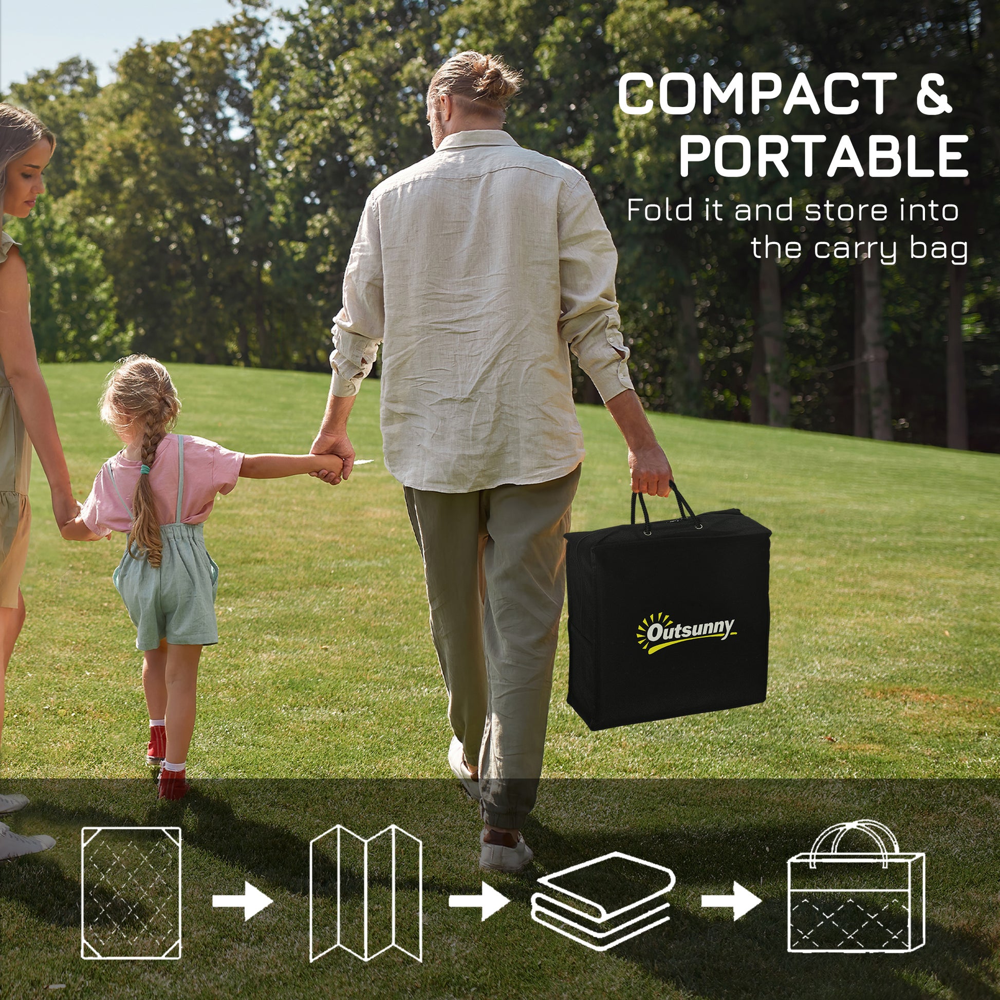 Camp on carpet with Outsunny. This porch rug is designed to handle dirt. Outdoor-ready, our rug really cleans up fast; sweep it, spray it, wipe it, or wave it; its powerful polypropylene fibers stay dry and don't saturate. Keep a plastic outdoor rug in the camper, RV, or car; it's excellent for camping, beach trips, patio picnics, or anywhere outside. The colour is reversible, meaning you can flip our plastic rug over to have a fresh side or a fresh style. Upholster the outdoors with Outsunny.