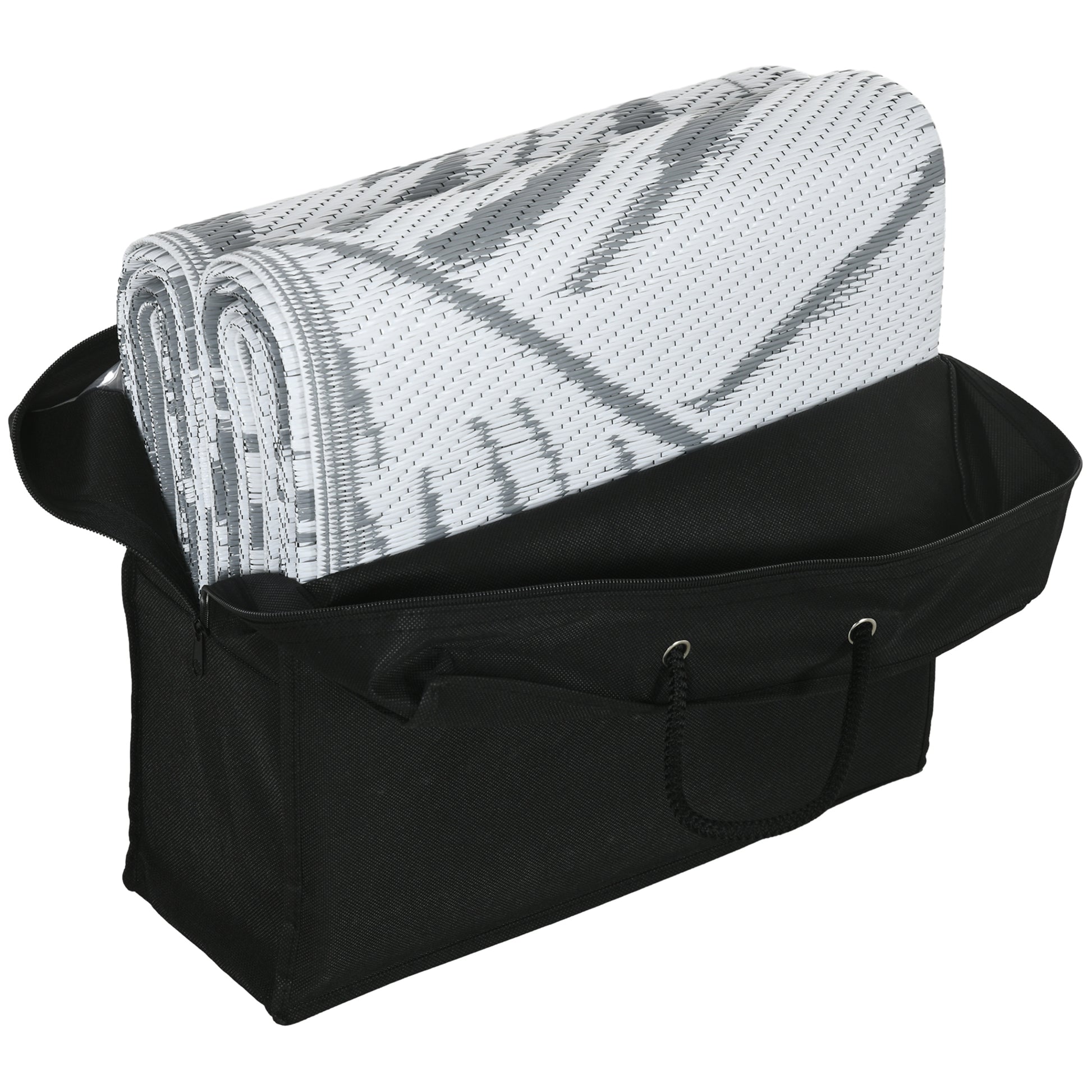 Outsunny Plastic Straw Reversible RV Outdoor Rug with Carry Bag, 182 x 274cm, Grey and White