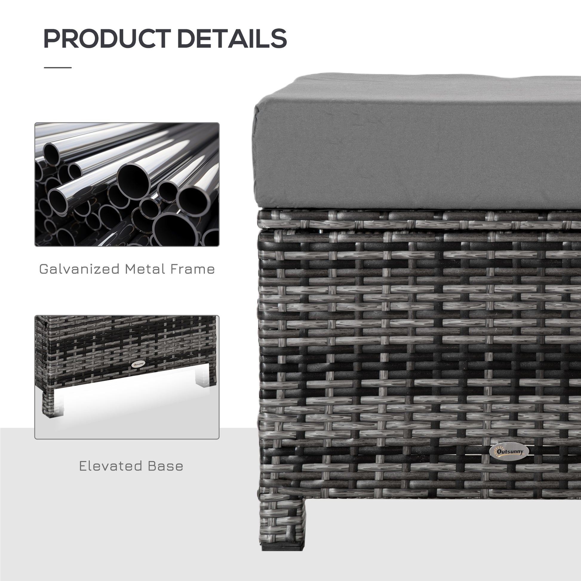 Outsunny Rattan Footstool Wicker Ottoman with Padded Seat Cushion Outdoor Patio Furniture for Garden Poolside Living Room, 50 x 50 x 35 cm, Grey