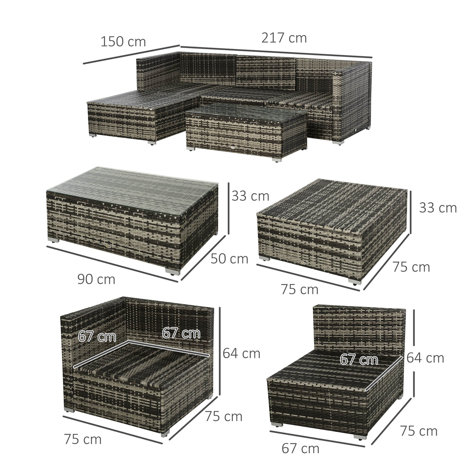 Outsunny Rattan Garden Sofa Set, 4-Seater Wicker Sectional for Garden, Grey