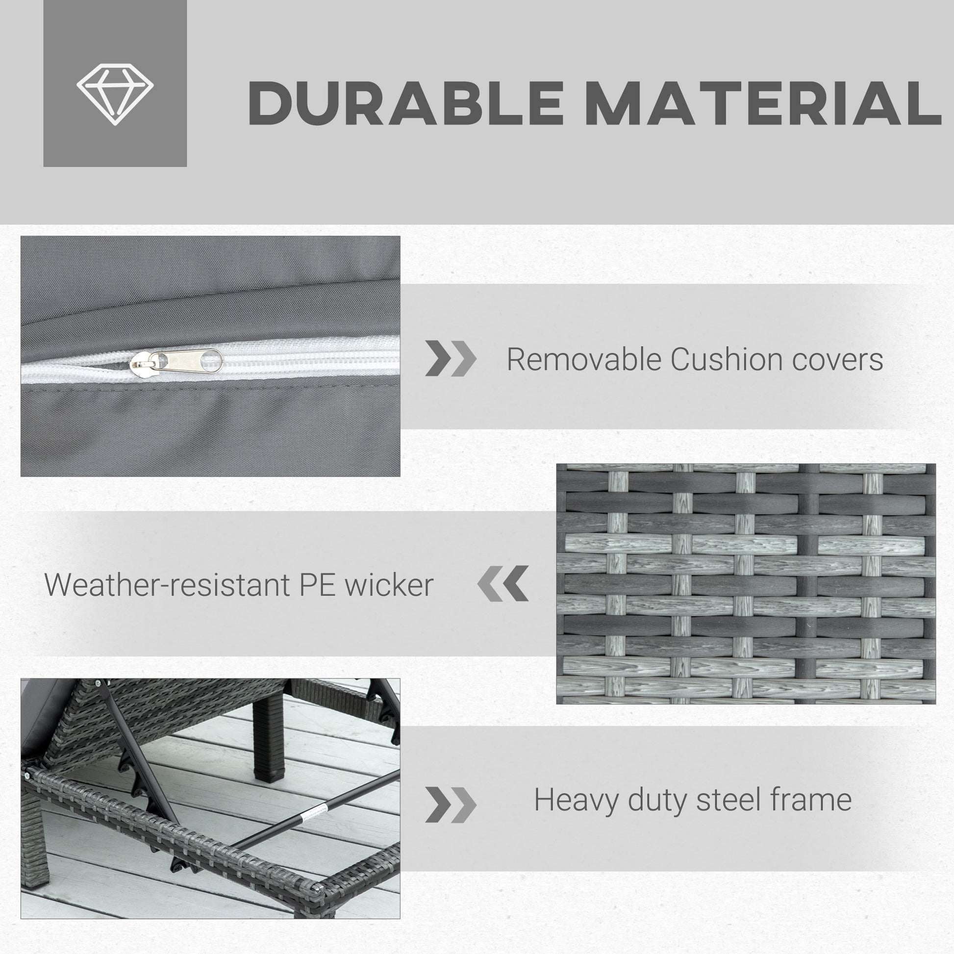 Outsunny Rattan Sun Lounger, 5-Level Adjustable Garden Lounger Recliner with Cushion and Headrest, Outdoor Reclining Sunbed, Steel Frame Garden Chair for Patio, Beach, Terrace, Dark Grey