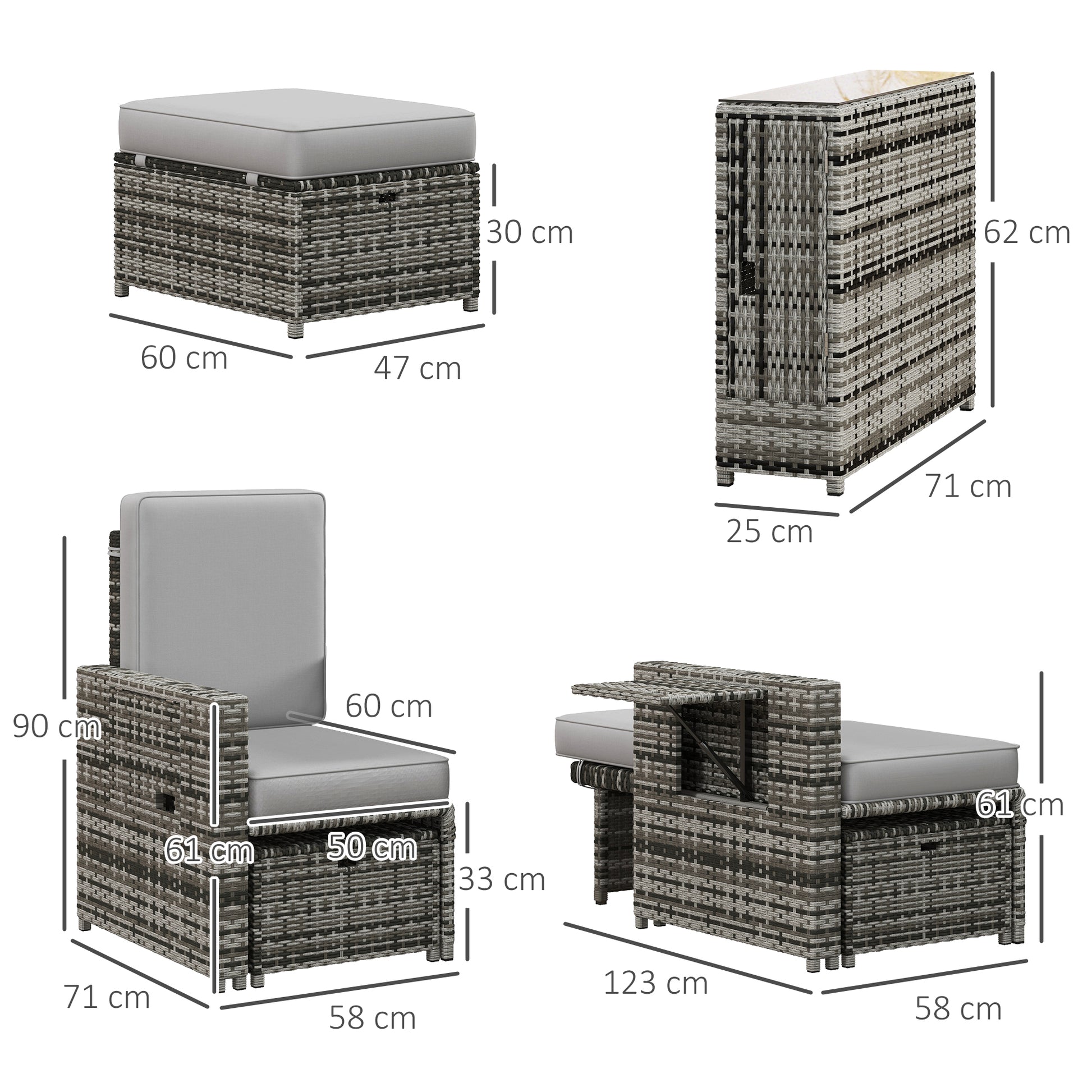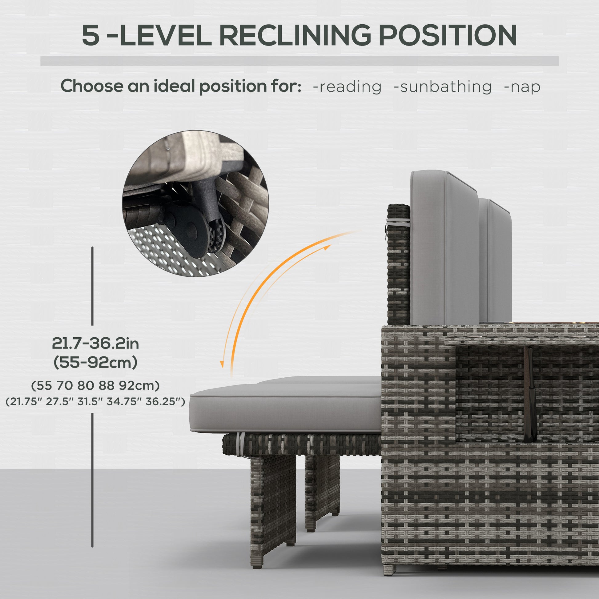 Outsunny Rattan Sun Lounger w/ Storage Tea Table & Footstools, Grey