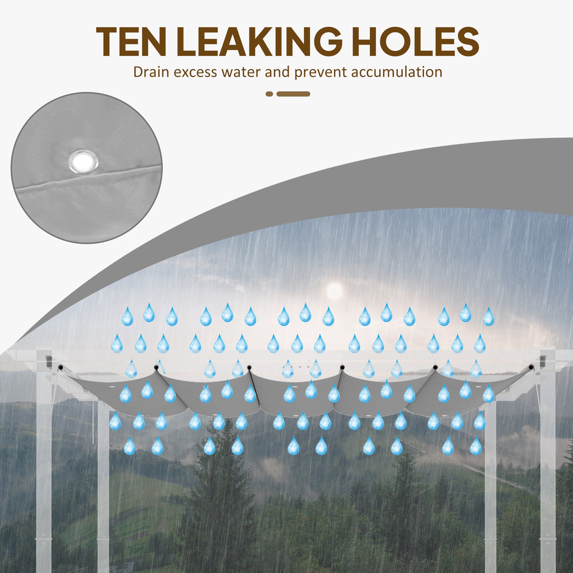Bringing your pergola back to life is easy with this canopy replacement top from Outsunny. Made from polyester, the fabric is long-lasting for extended use, with a plastic coating for protecting against mild weathering. The holes on each end make it easy to set up and remove. Comes with drainage holes, so you don't have to worry about water build-up.