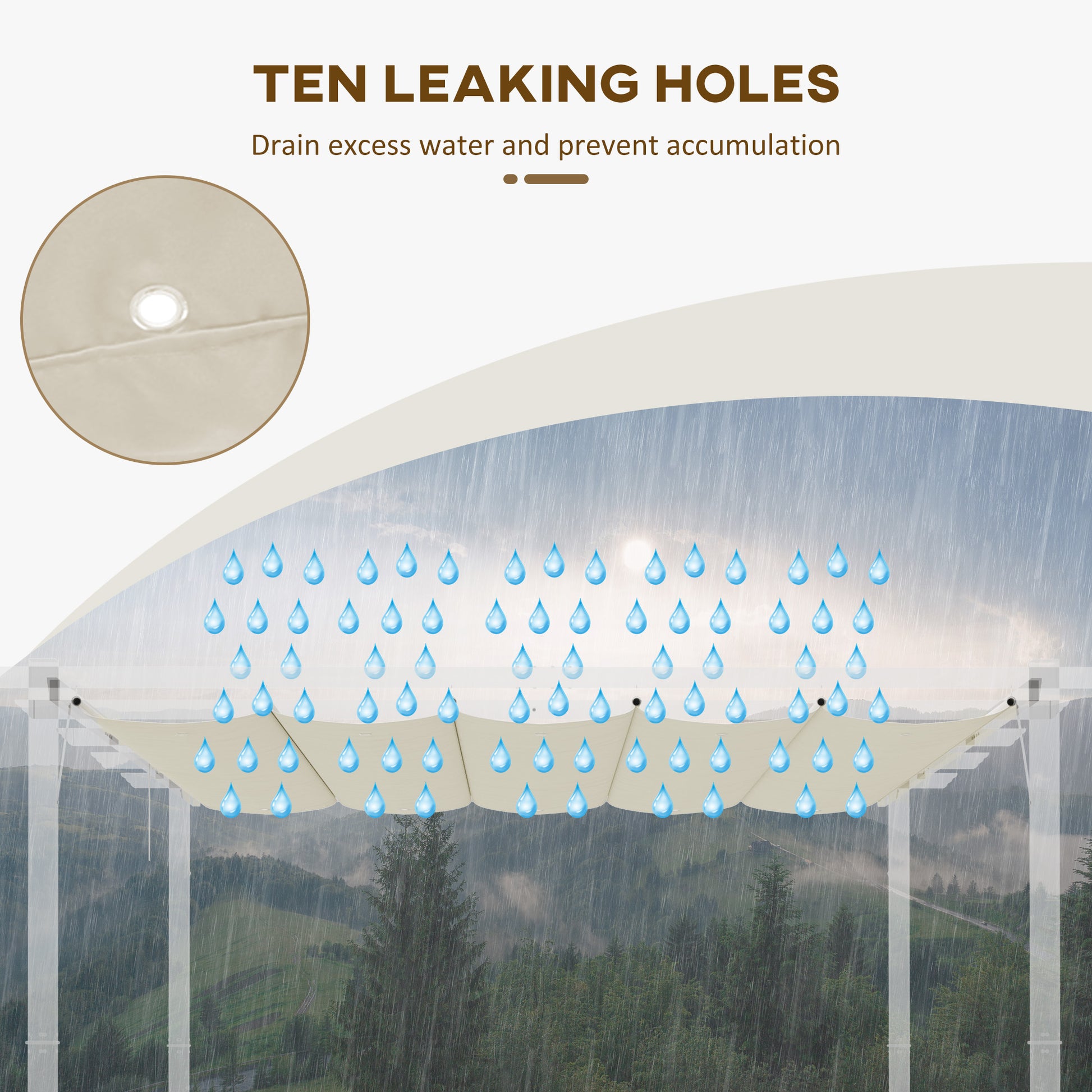 Bringing your pergola back to life is easy with this canopy replacement top from Outsunny. Made from polyester, the fabric is long-lasting for extended use, with a plastic coating for protecting against mild weathering. The holes on each end make it easy to set up and remove. Comes with drainage holes, so you don't have to worry about water build-up.