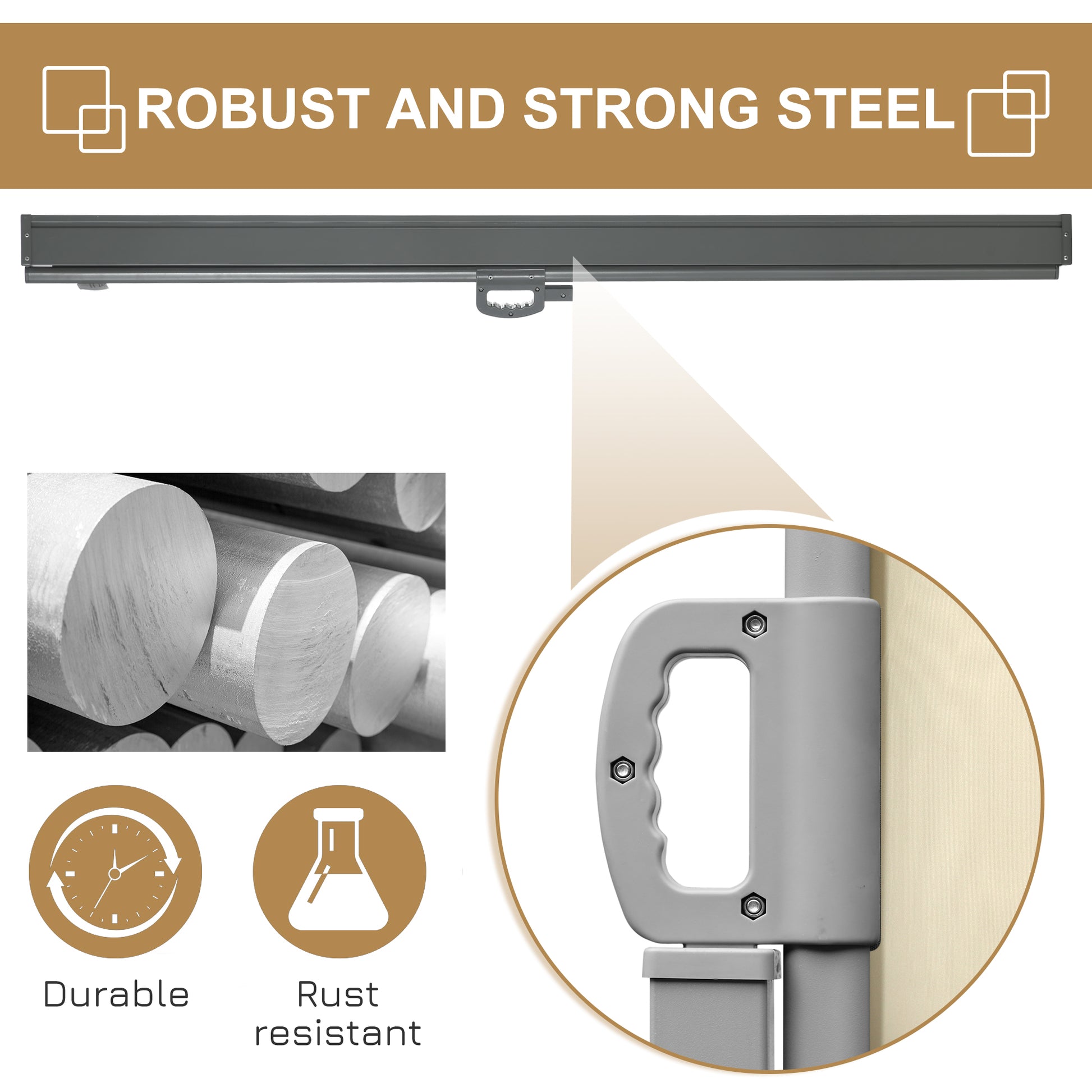 Prevent glaring sun and gusting winds disturbing you outdoors with this retractable screen from Outsunny. The metal base frame is tough to ensure it is a lasting addition in your garden, with it attaching securely and easily to cement or solid wood for quick set up. The free standing awning is made from polyester with PA coating for weather-resistance, with it pulling out smoothly and fixating in place with the clip lock handle – a simple operation. A great way to enjoyably extend your time out in the garden.