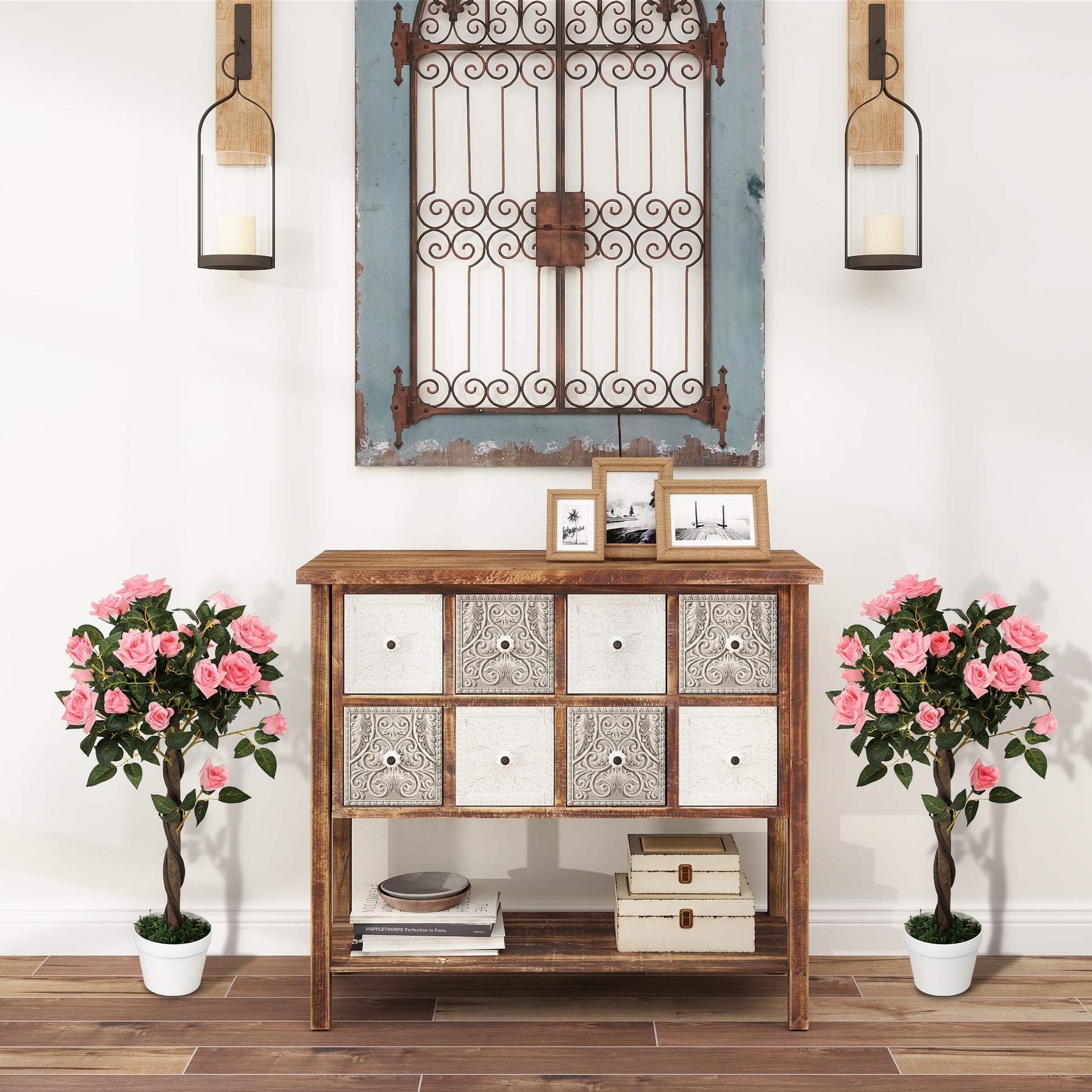 Outsunny Set of 2 Artificial Plants Pink Rose Floral in Pot, Fake Plants for Home Indoor Decor, 90cm