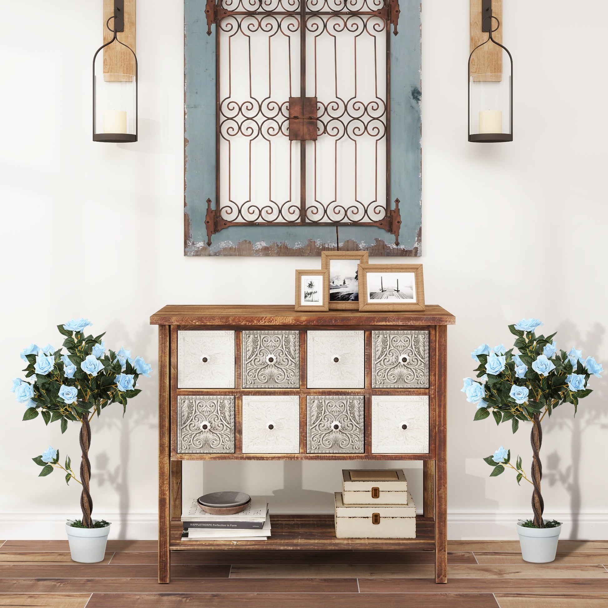 Outsunny Set of 2 Artificial Plants White Rose Floral in Pot, Fake Plants for Home Indoor Decor, 90cm, Light Blue
