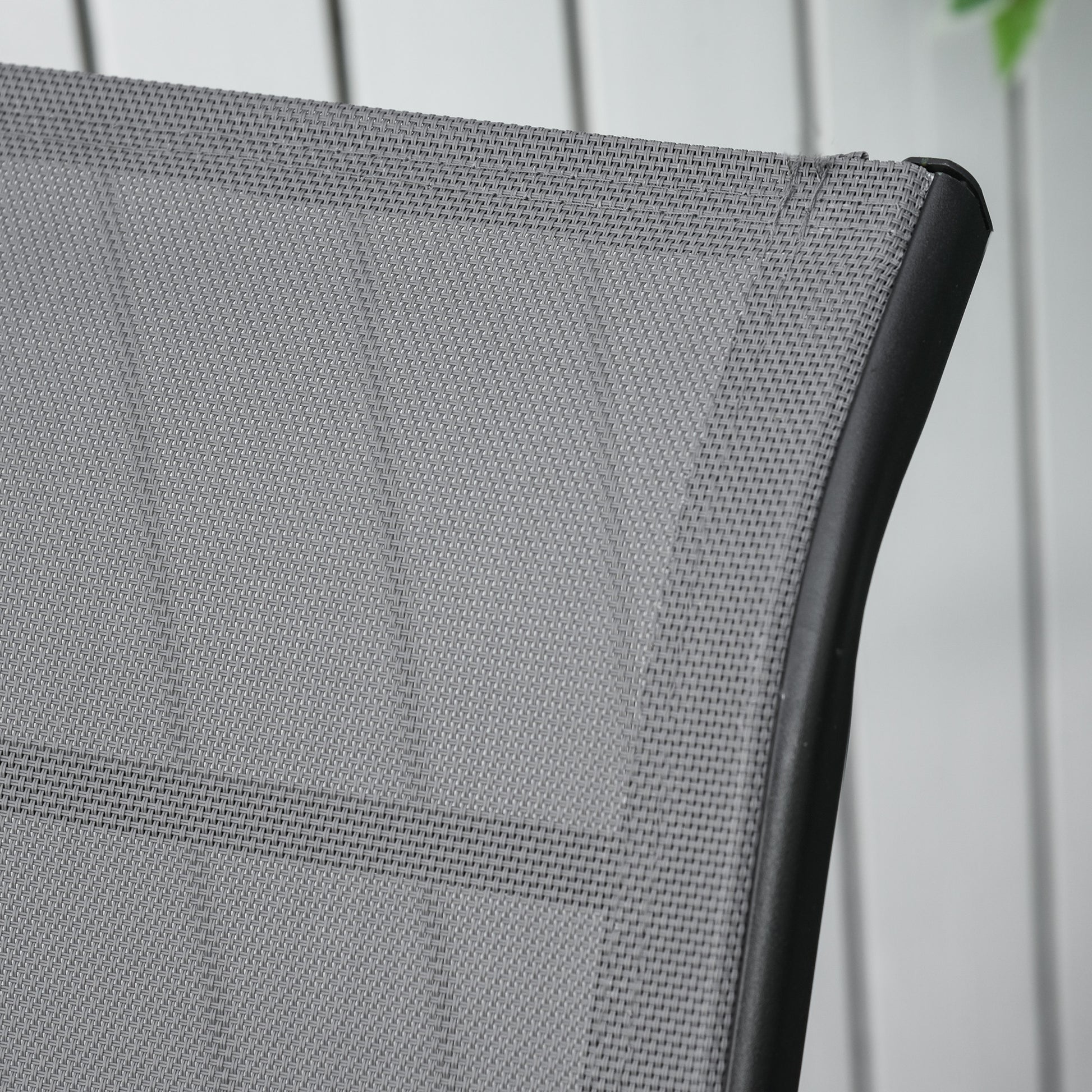 Outsunny Set of 2 Outdoor Sun Lounger 10-Position Adjustable Texteline Folding Reclining Chairs with Footrest for Patio Garden, Grey