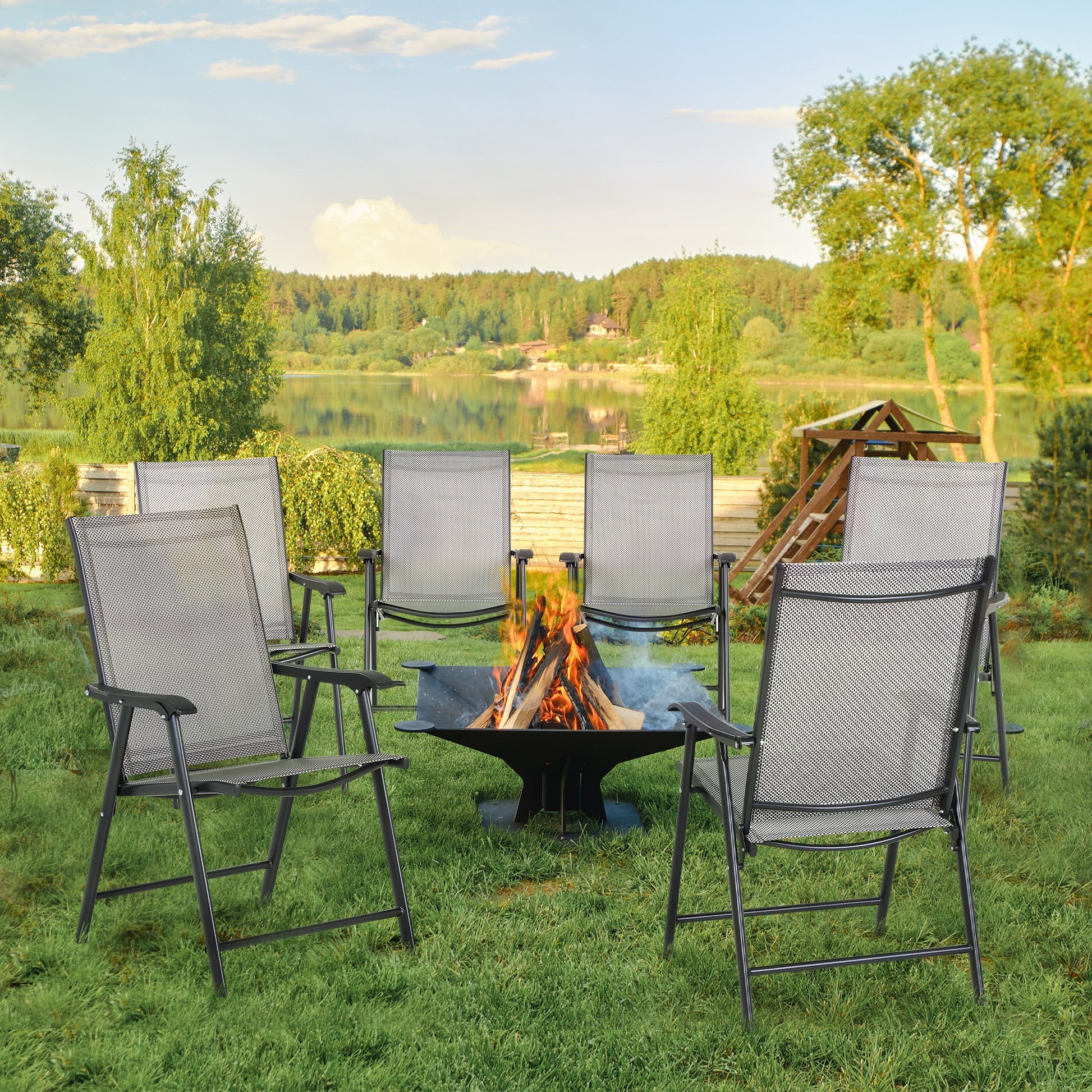 Outsunny Set of Six Folding Garden Chairs - Grey