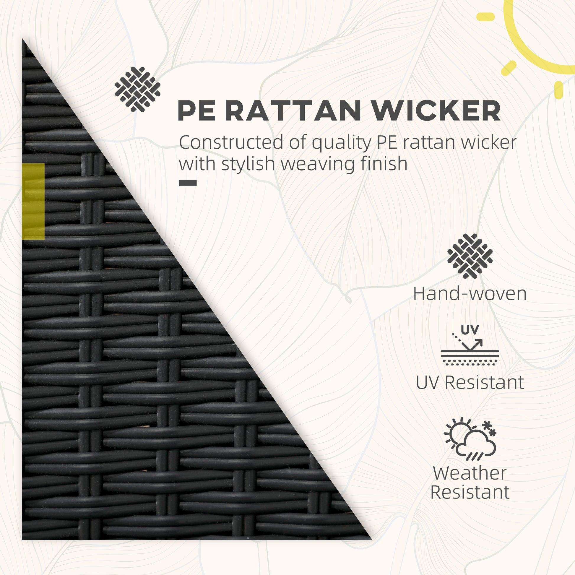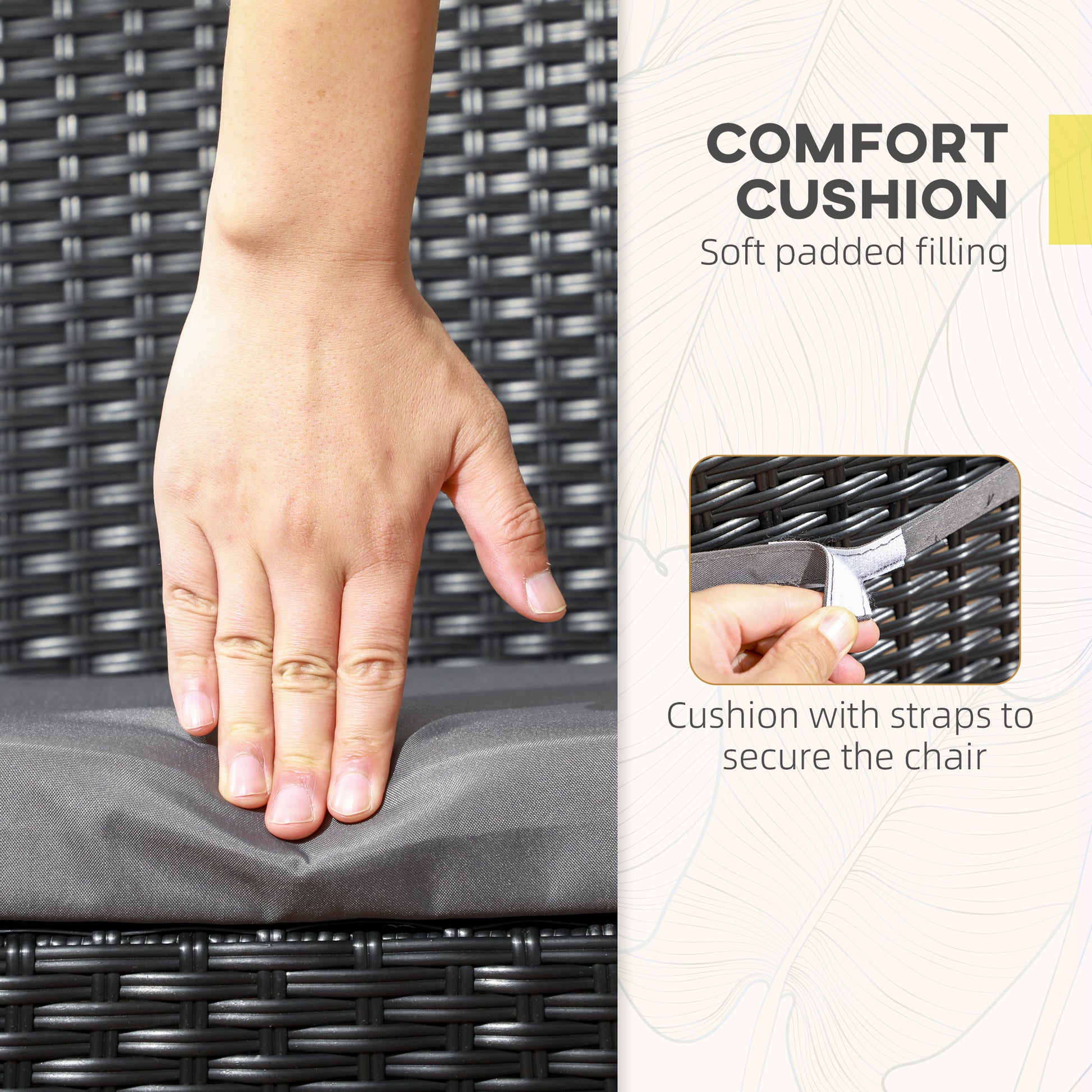 A must for your garden: these Outsunny chairs. Powder coated metal frames for a strong core, wrapped in rattan for style. High backs for support. Complete with a cushion for comfort.