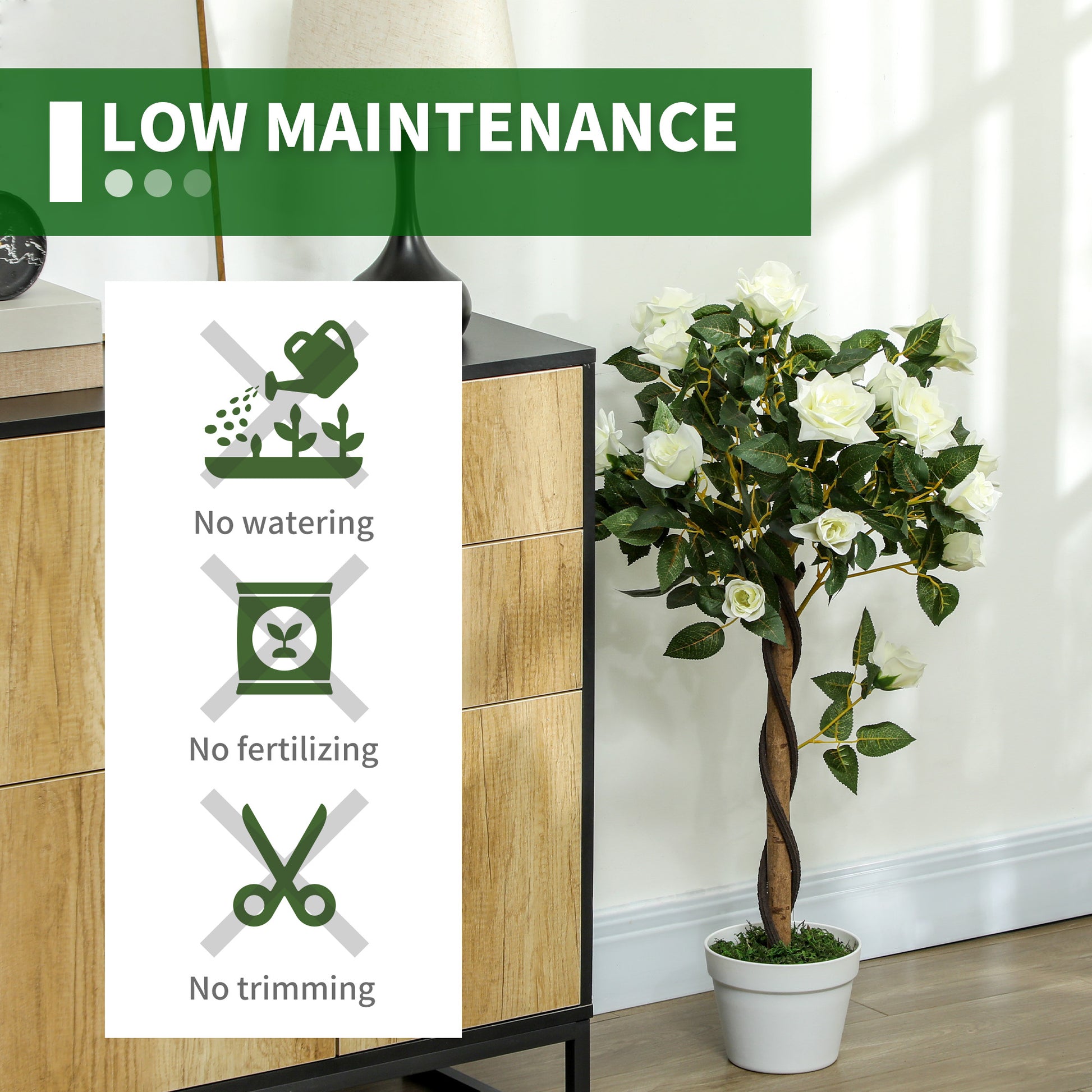 Outsunny Set of Two Faux Rose Trees - White