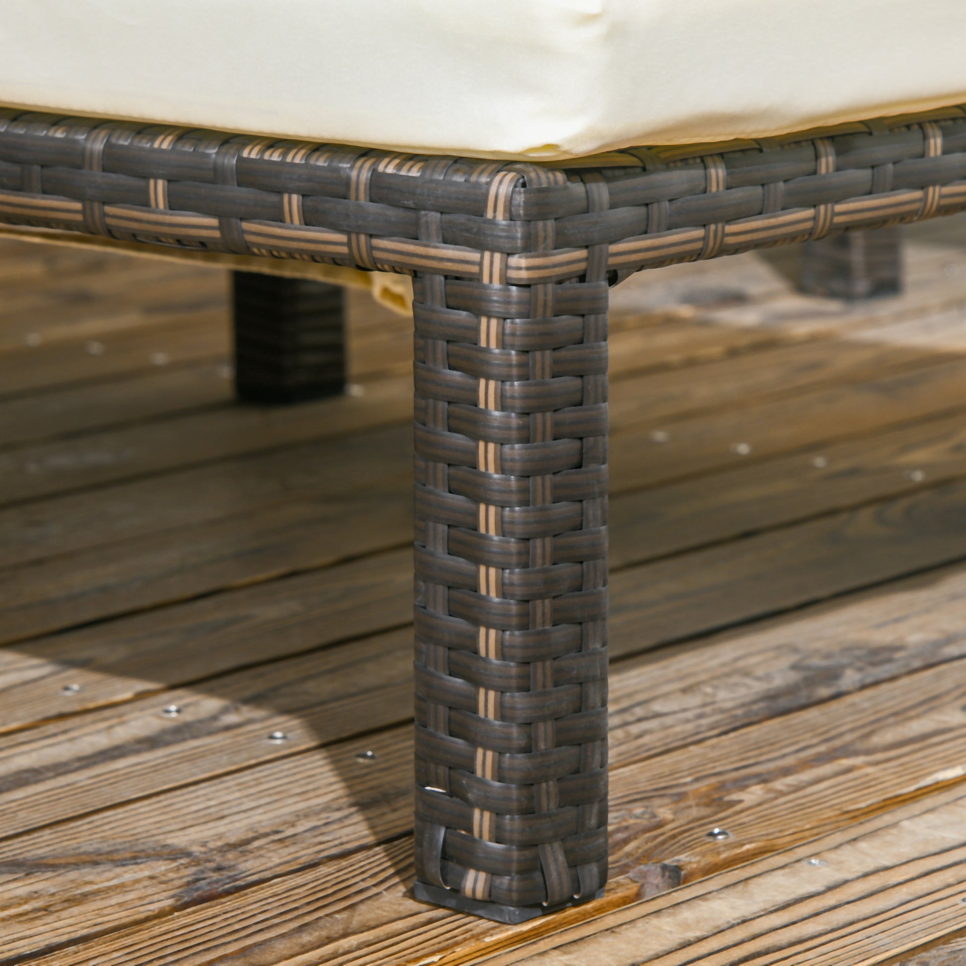 Outsunny Set of Two Reclining Rattan Sun Loungers, with Cushions - Brown/Cream