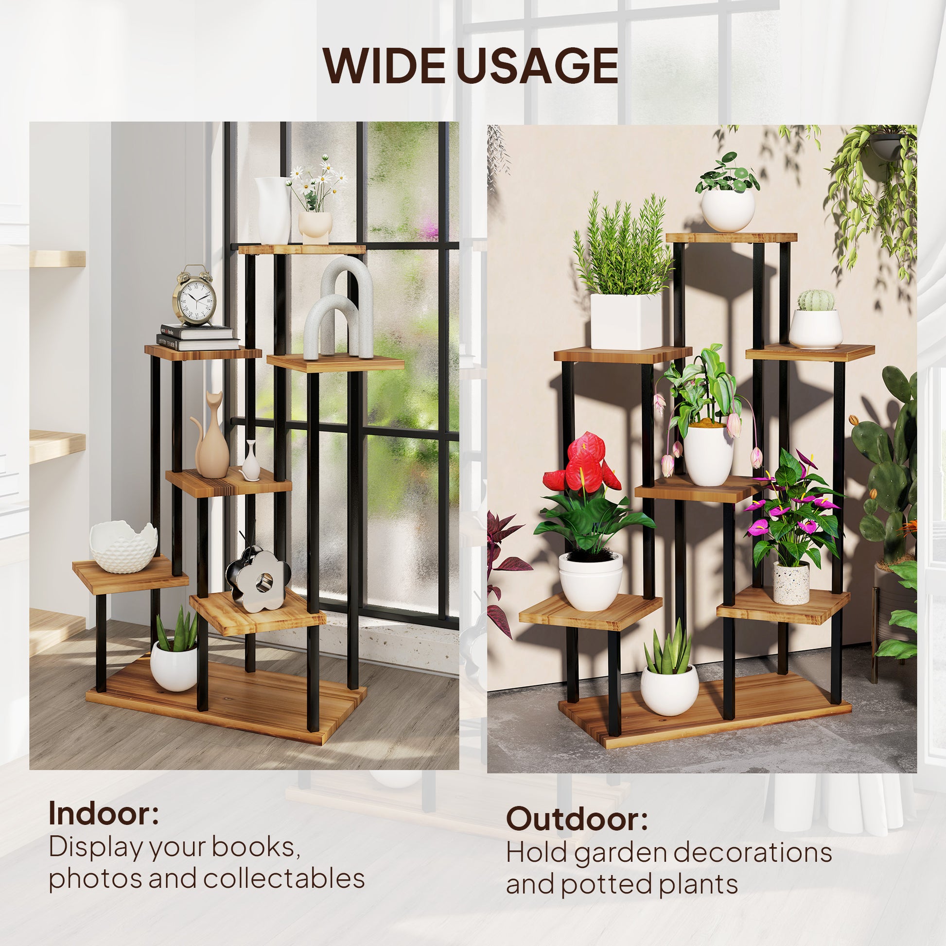 Bring greenery to many corner spots with this Outsunny plant shelf. The five tiers offer seven staggered shelves: holds up to seven plants, with plenty of space around each shelf - lots of growing room. The wooden shelves are naturally strong and beautiful - corner plant stand is complete with a steel frame for all the support it requires.