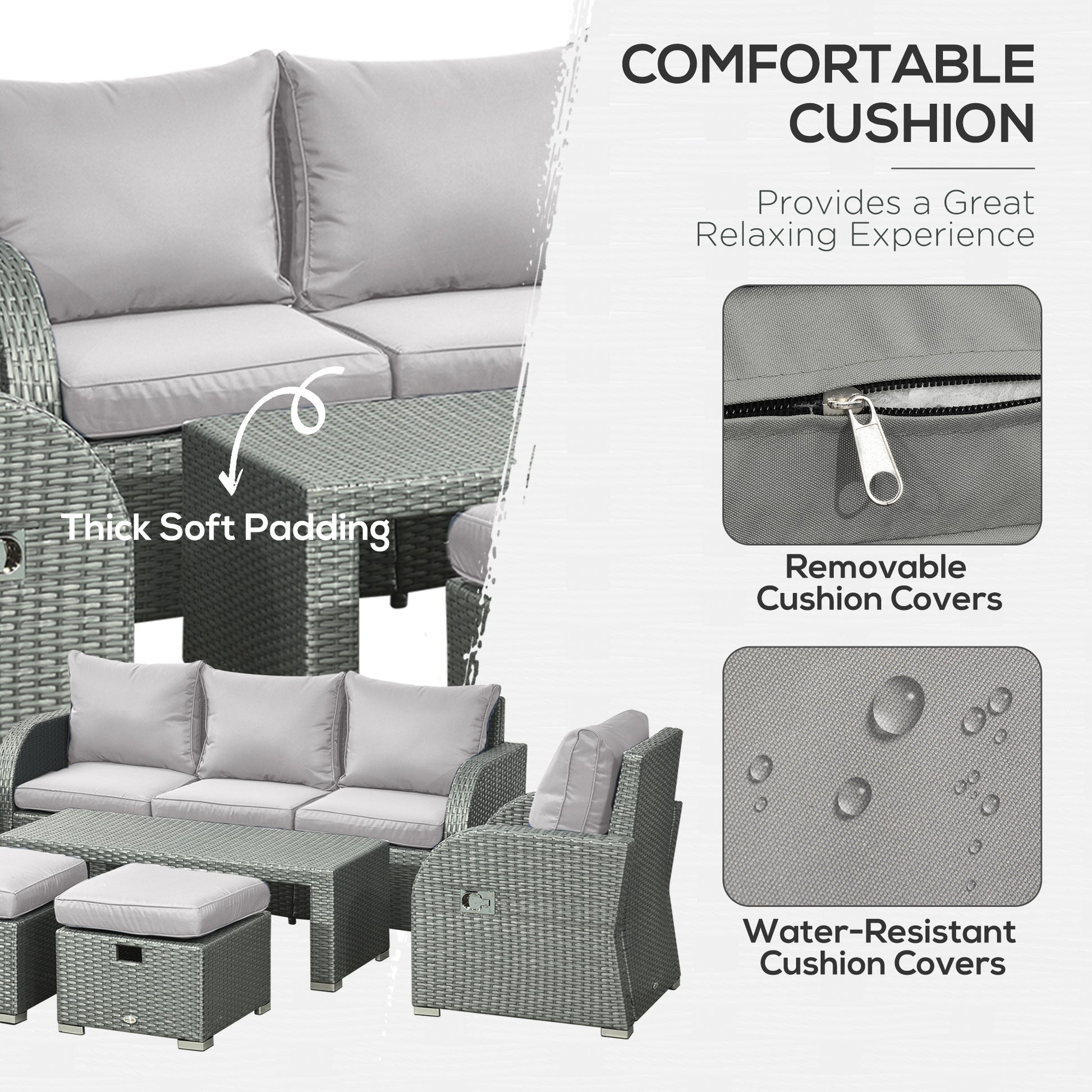 - Material: PE Rattan, Steel, Fabric, Sponge