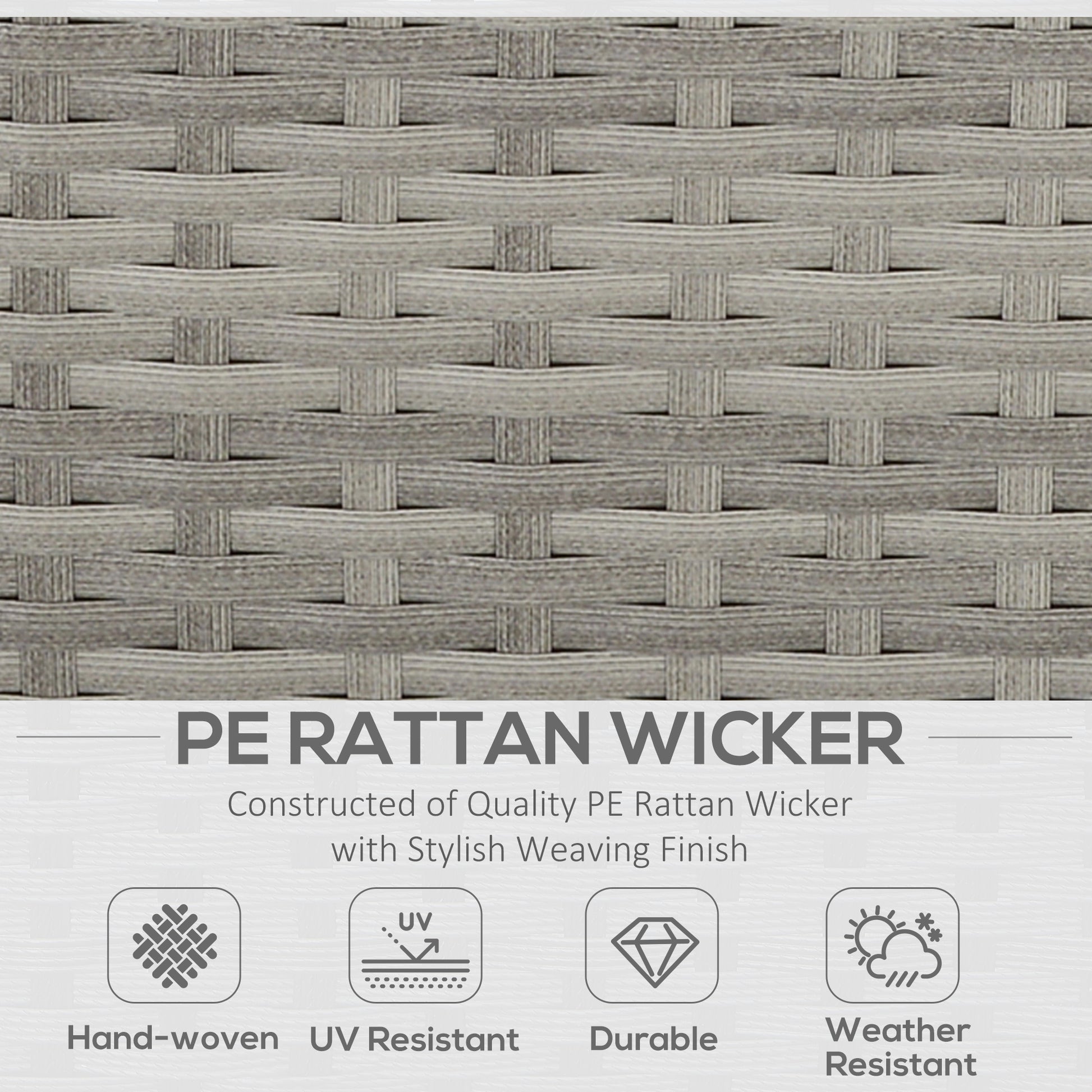- Tough powder-coated metal base frame, wrapped in stylish and durable PE wicker