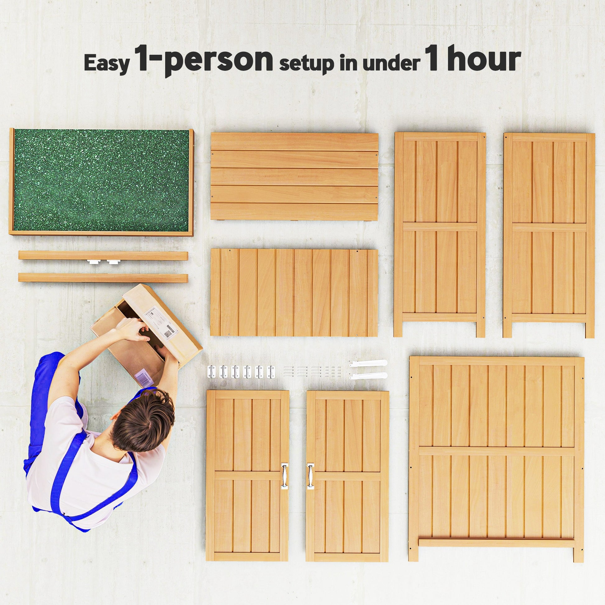Keep your garden neat and tools in their place with this small shed from Outsunny. A lift-up hinged roof and easy-access double doors give you convenient access from both angles. Magnetic closures help keep the doors safely shut even in windy days. This solid wooden garden shed with a weather-resistant coating handles the outdoors and adds a natural touch. Two-tier shelves help you keep tools, flower pots and cleaning supplies organised. A practical and attractive tool shed for every tidy gardener.