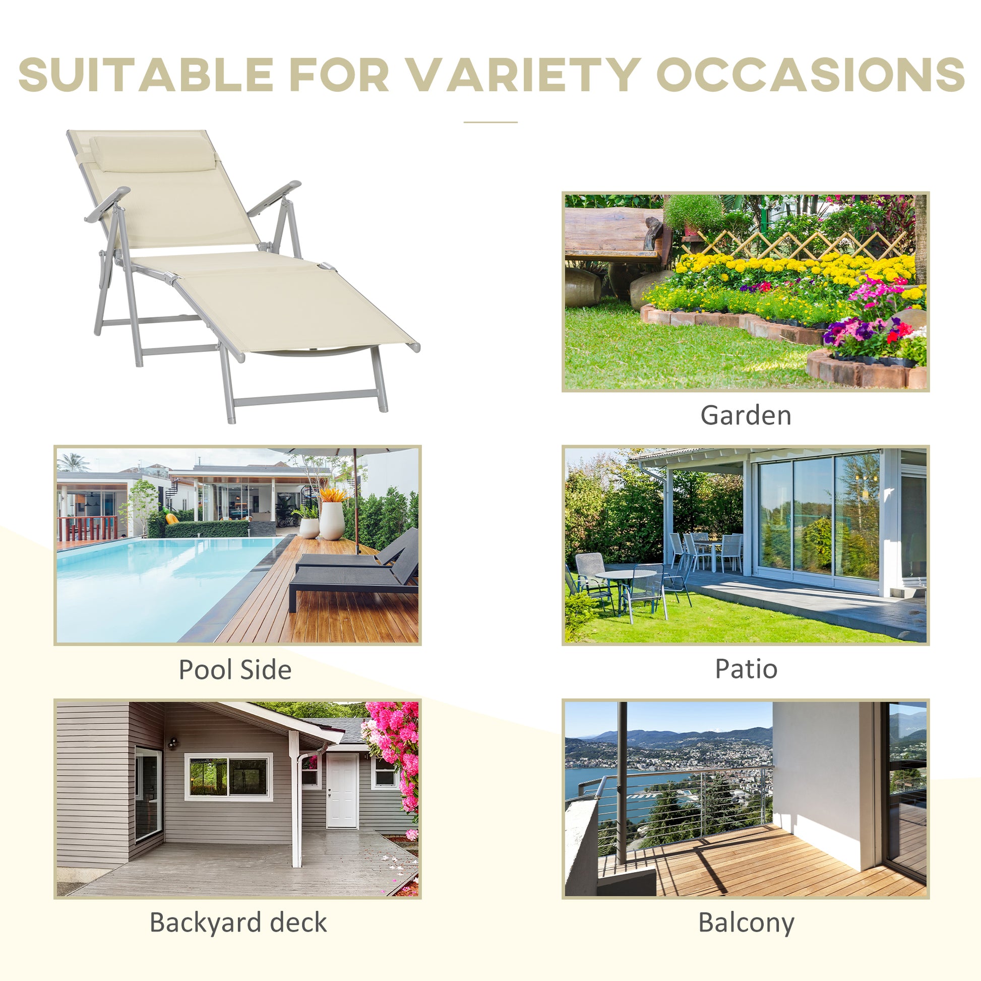 Outsunny Steel Fabric Sun Lounger Outdoor Folding Chaise Lounge Chair Recliner with Portable Design & 7 Adjustable Backrest Positions - Beige