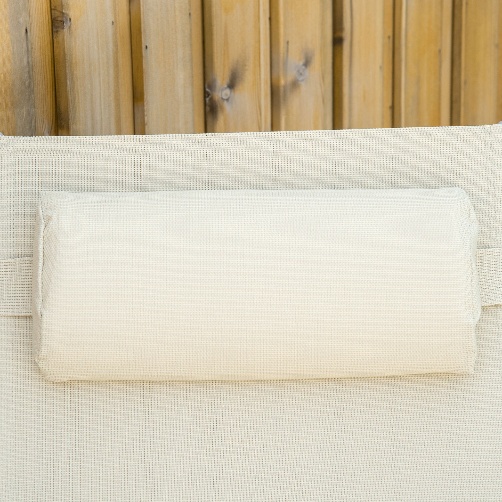 Relax easily all day long - thanks to this Outsunny garden lounger. The seven-level adjustable back means you can rest back to a position you want: whether shutting eye, reading a book or catching up with a friend. The metal frame is strong, with three long base legs for balance, wrapped in fabric to hold your body with full support. The removable top pillow keeps your head comfortable. When you've finished using it, this garden sun lounger is easy to fold up, carry and store.