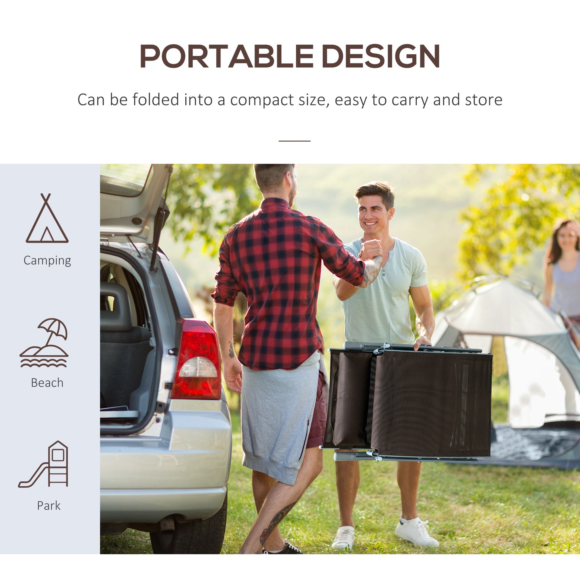 Outsunny Sun Lounger Steel Frame Outdoor Folding Chaise Texteline Lounge Chair Recliner with Headrest & 7 Levels Adjustable Backrest, Brown