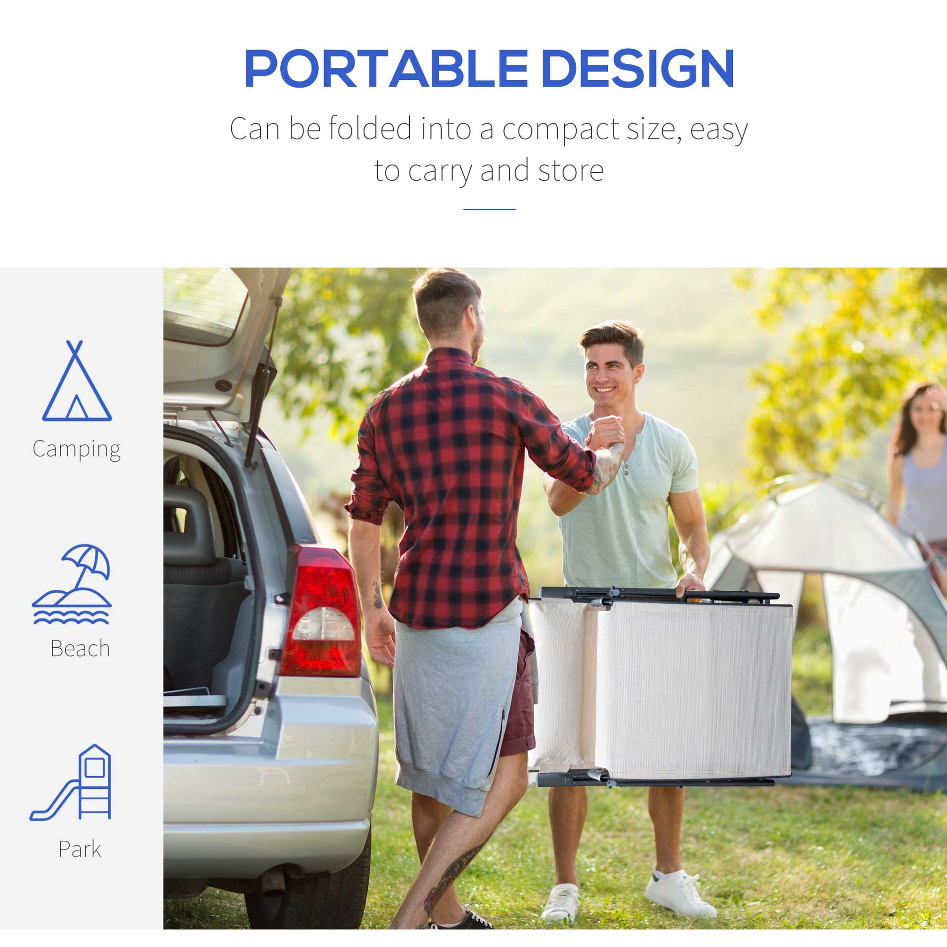 Outsunny Sun Lounger Steel Frame Outdoor Folding Chaise Texteline Lounge Chair Recliner with Headrest & 7 Levels Adjustable Backrest, Cream White