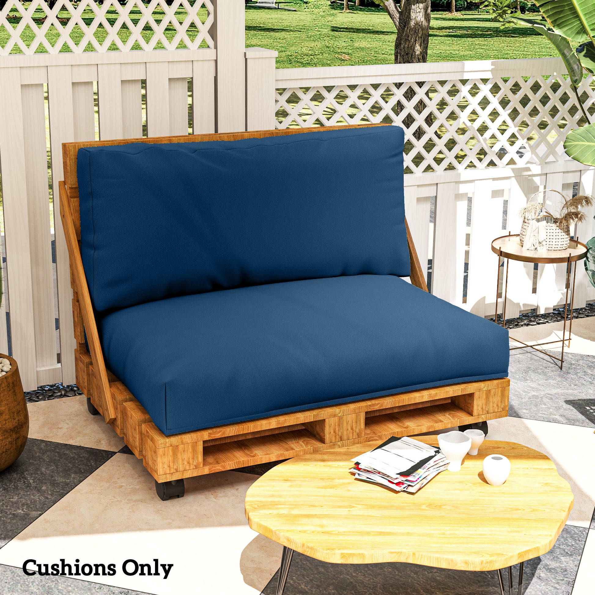 Outsunny Two Piece Seat Pallet and Back Cushions - Navy Blue