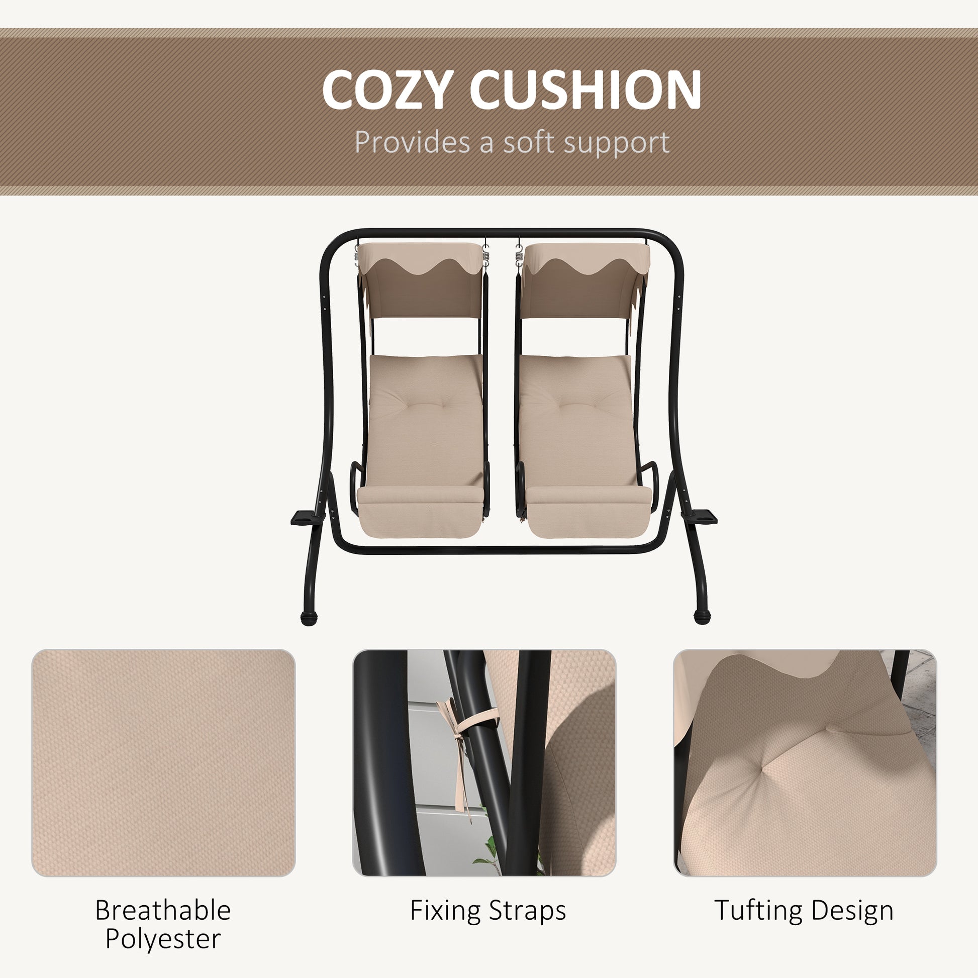 Outsunny Two-Seat Garden Swing Chair, with Protective Canopy - Beige