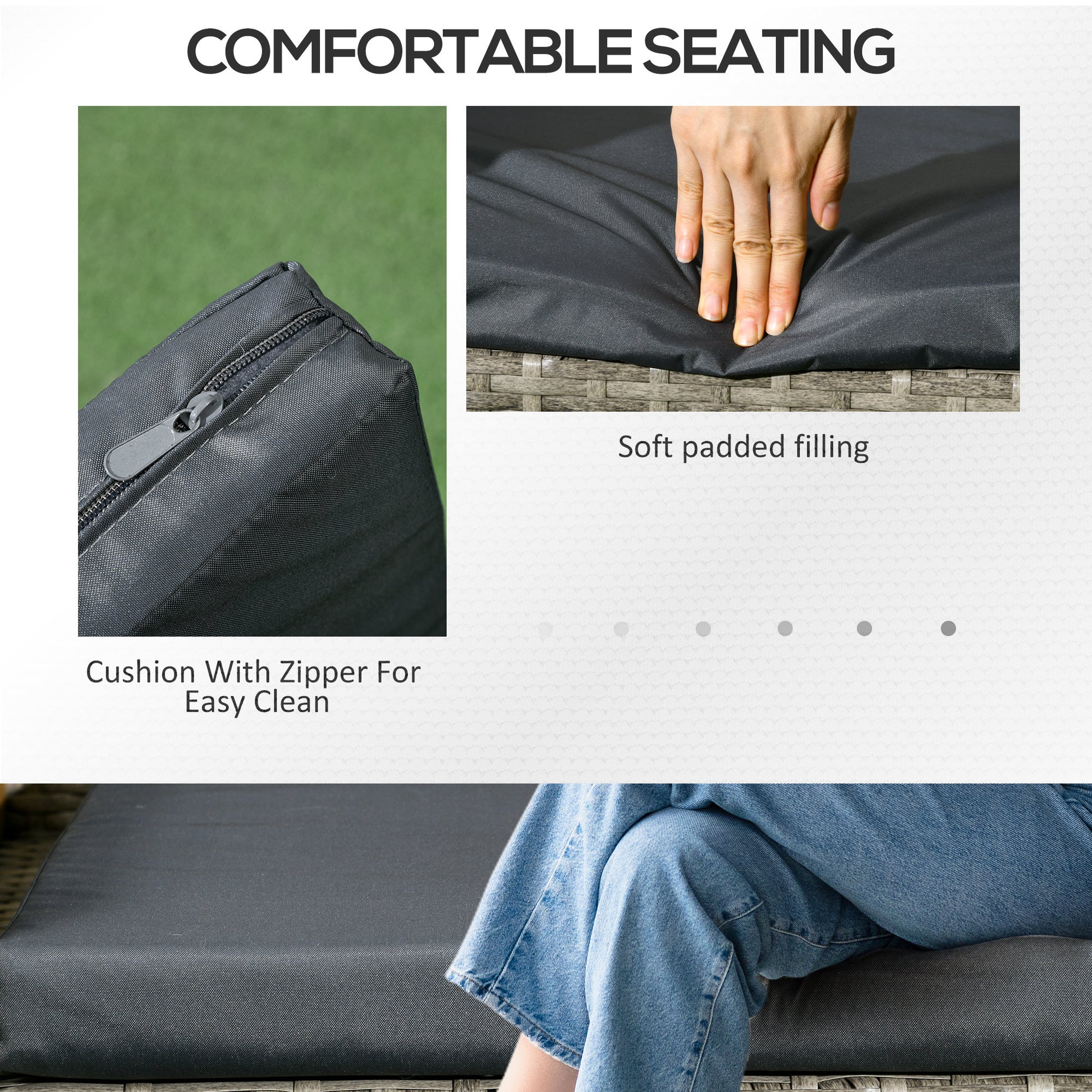 - Cushions for comfort, with removable and washable covers