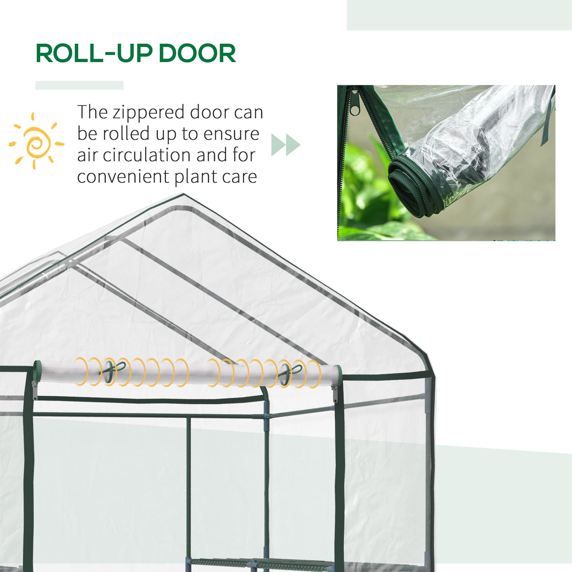 Outsunny Walk in Greenhouse with 3-Tier 8 Shelves, Green House with Hemmed Cover, Roll-up Zipped Door, Steel Frame, 143 x 143 x 195cm