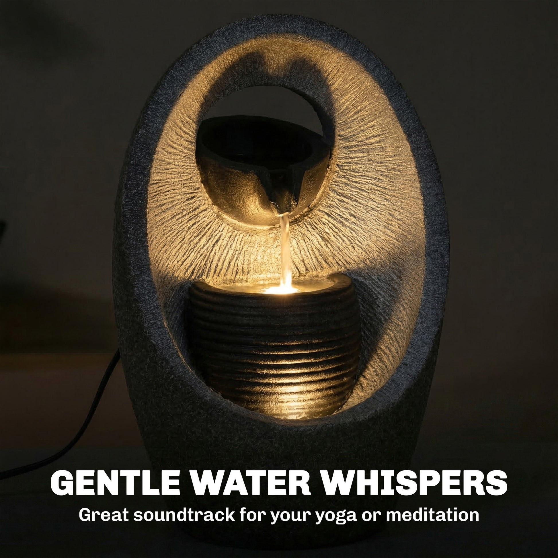 - Two-tiered water flow and a warm LED light create a relaxing atmosphere