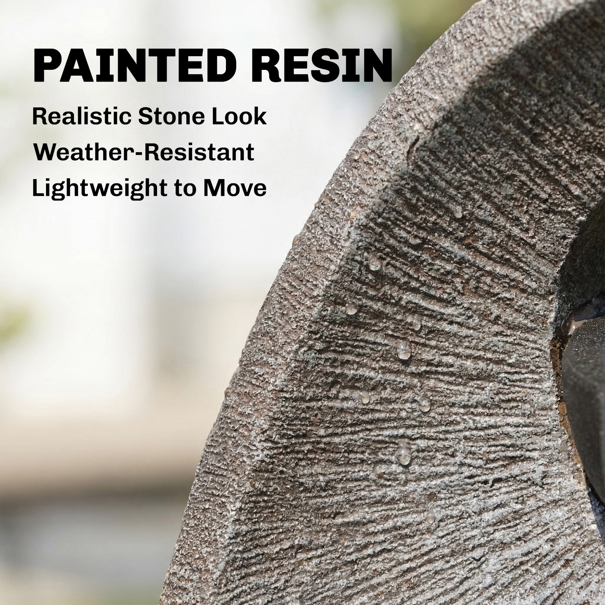 - This waterfall fountain is made from lightweight yet weather-resistant painted resin