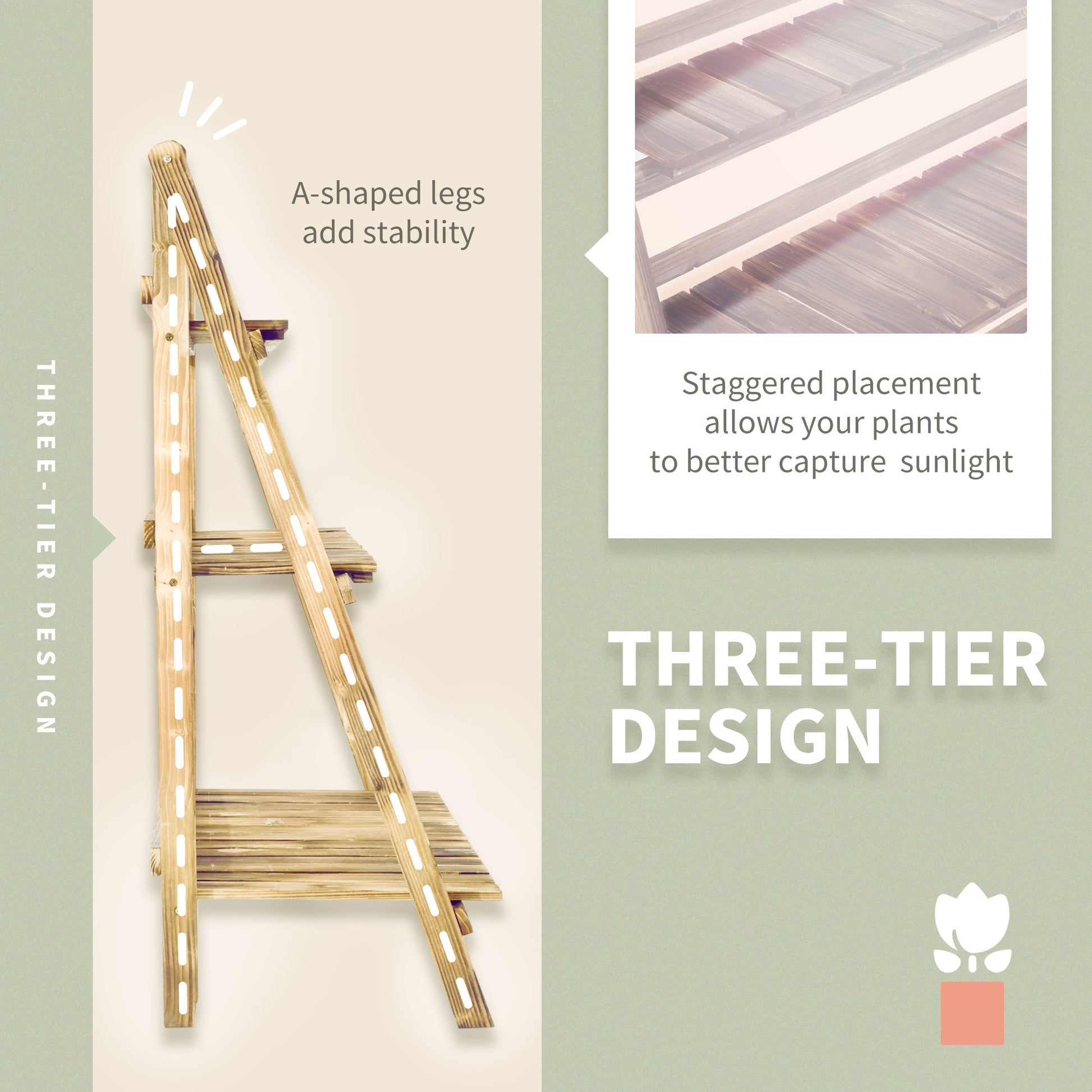 Outsunny Wooden Folding Flower Pot Stand 3 Tier Garden Planter Display Ladder Gardener Storage Shelves Rack Herb Holder (100L x 37W x 93H cm)