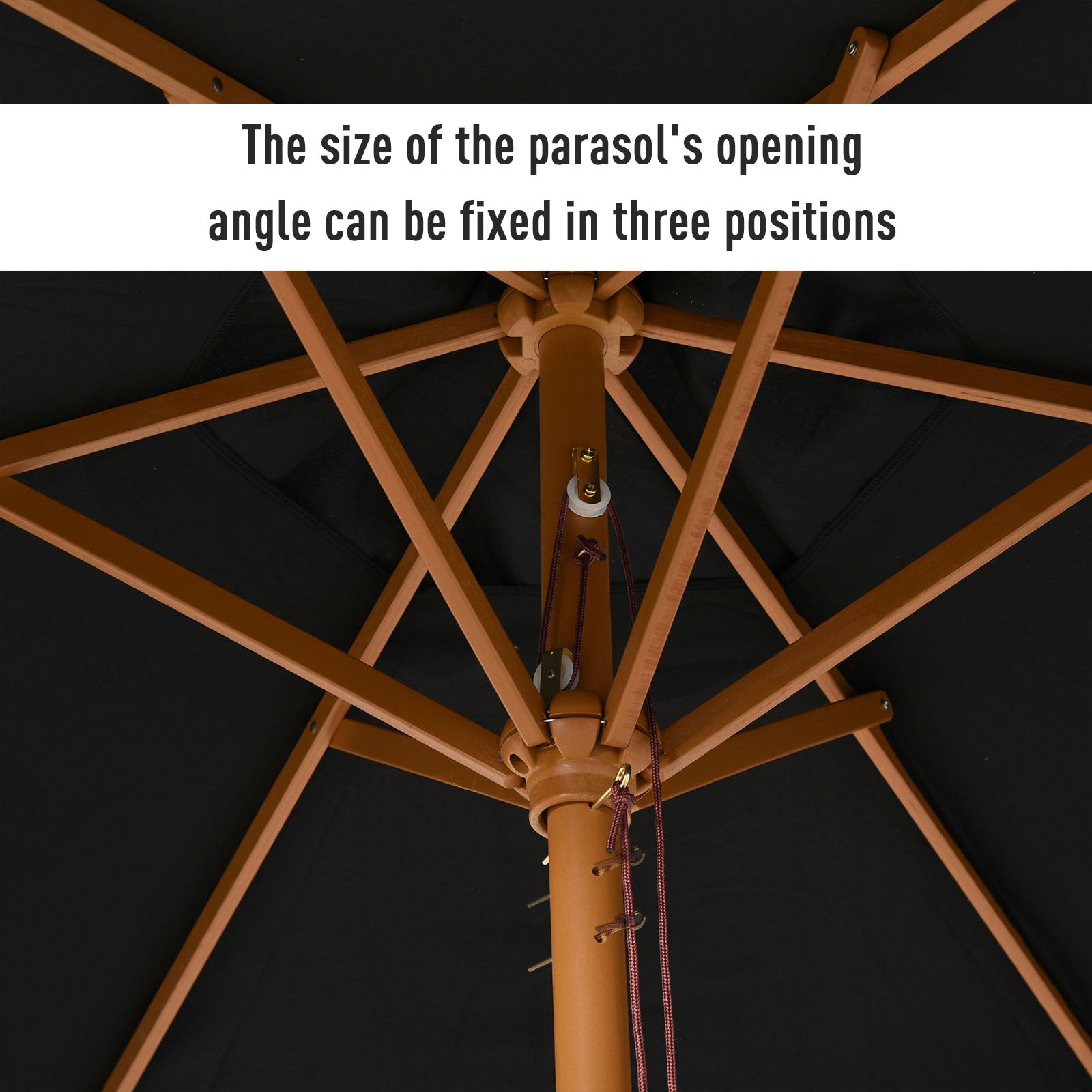 Outsunny Wooden Garden Umbrella Sun Shade with Top Vents, Bamboo Ribs and Sturdy Wood Pole, Black