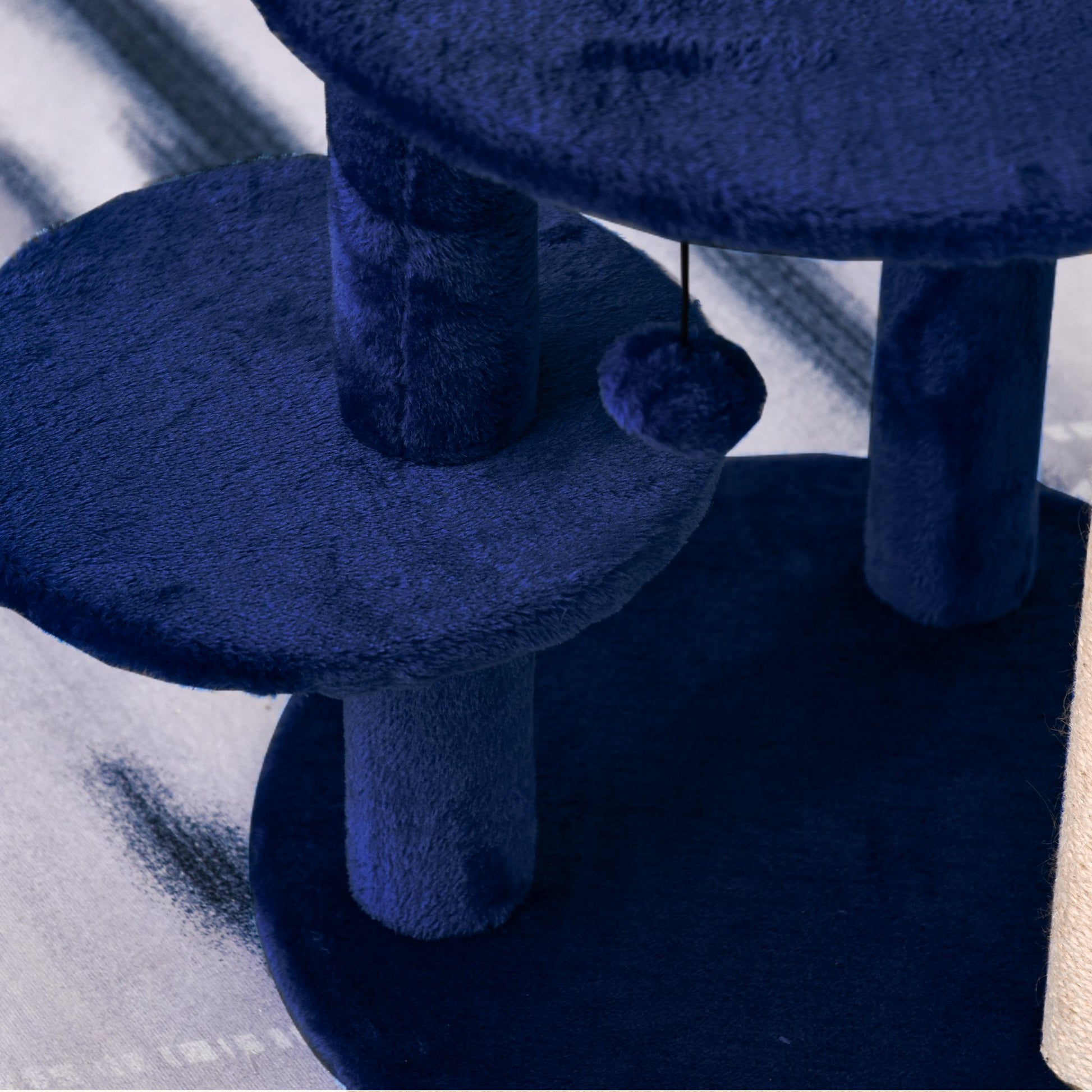 PawHut 104 cm Cat Tree, Cat Condo Tree Tower, Cat Activity Centre with Scratching Posts, Plush Perches, Hanging Ball - Blue