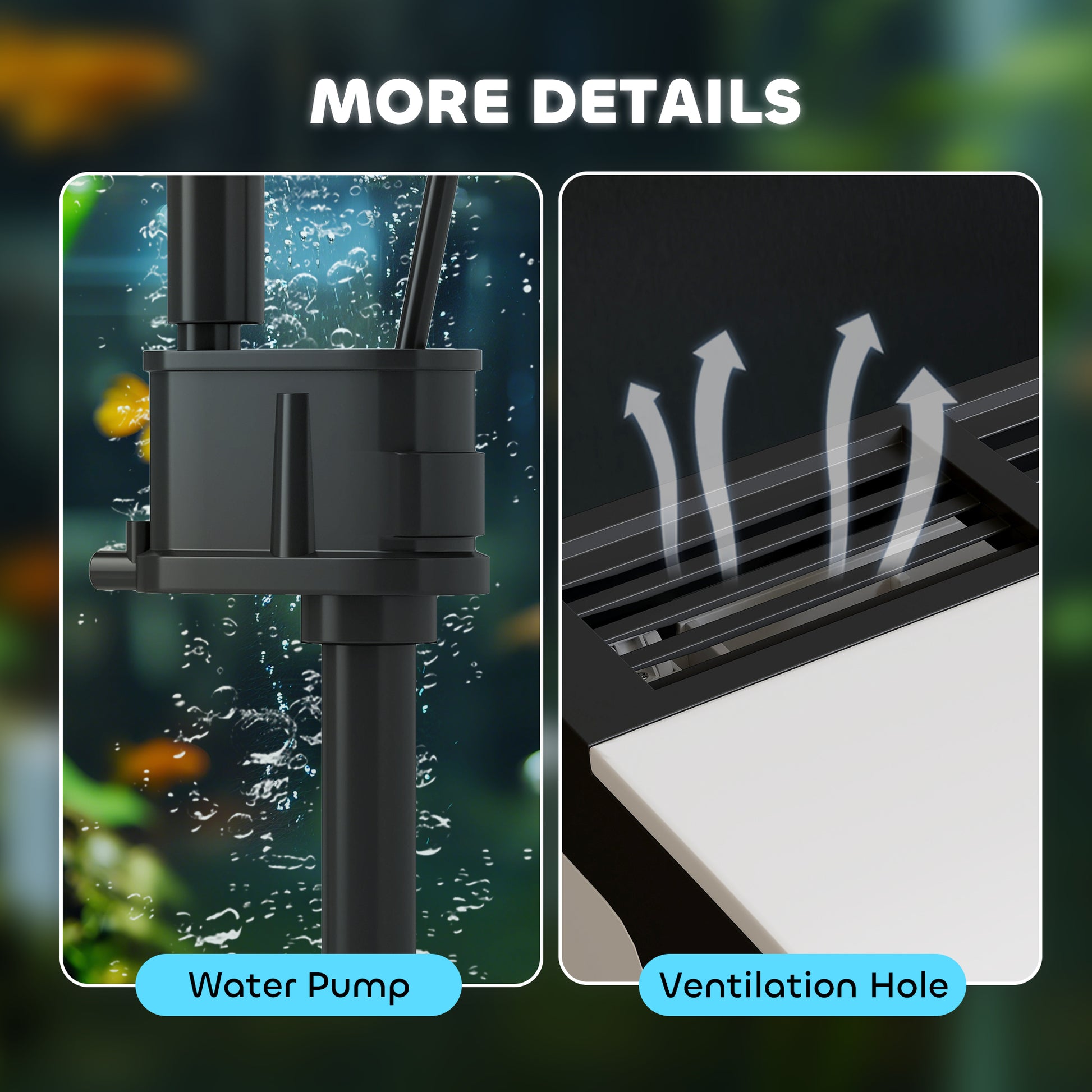 Create an aquatic oasis with our wonderful PawHut fish tank. The new centrepiece in your home, it has LED lighting with three modes, so you can get the mood just right. Its self-cleaning system keeps the tank hygienic, whilst the water pump lets fish breath and thrive. They'll swim freely around the 13L tank – and you'll easily watch through the crystal-clear HD glass. Bring a sense of calm and tranquility into your life; a captivating fish tank that sets your room apart from the rest.
