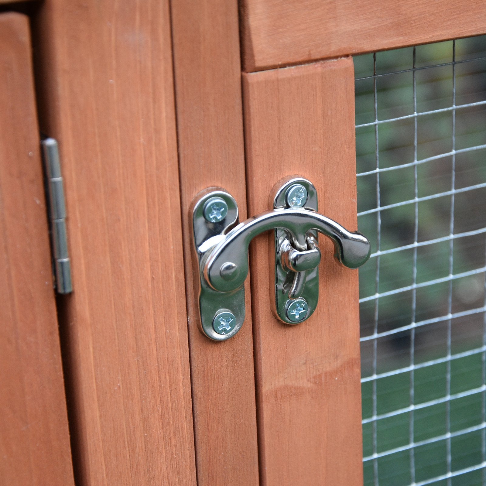 The ideal rabbit house form PawHut comes with one side fenced. A ramp leads to indoor area protecting pets from weather elements This indoor space has a netting bottom and a waste collection area, as well as a window to add further light. The entire structure is constructed from treated wood and keep weather