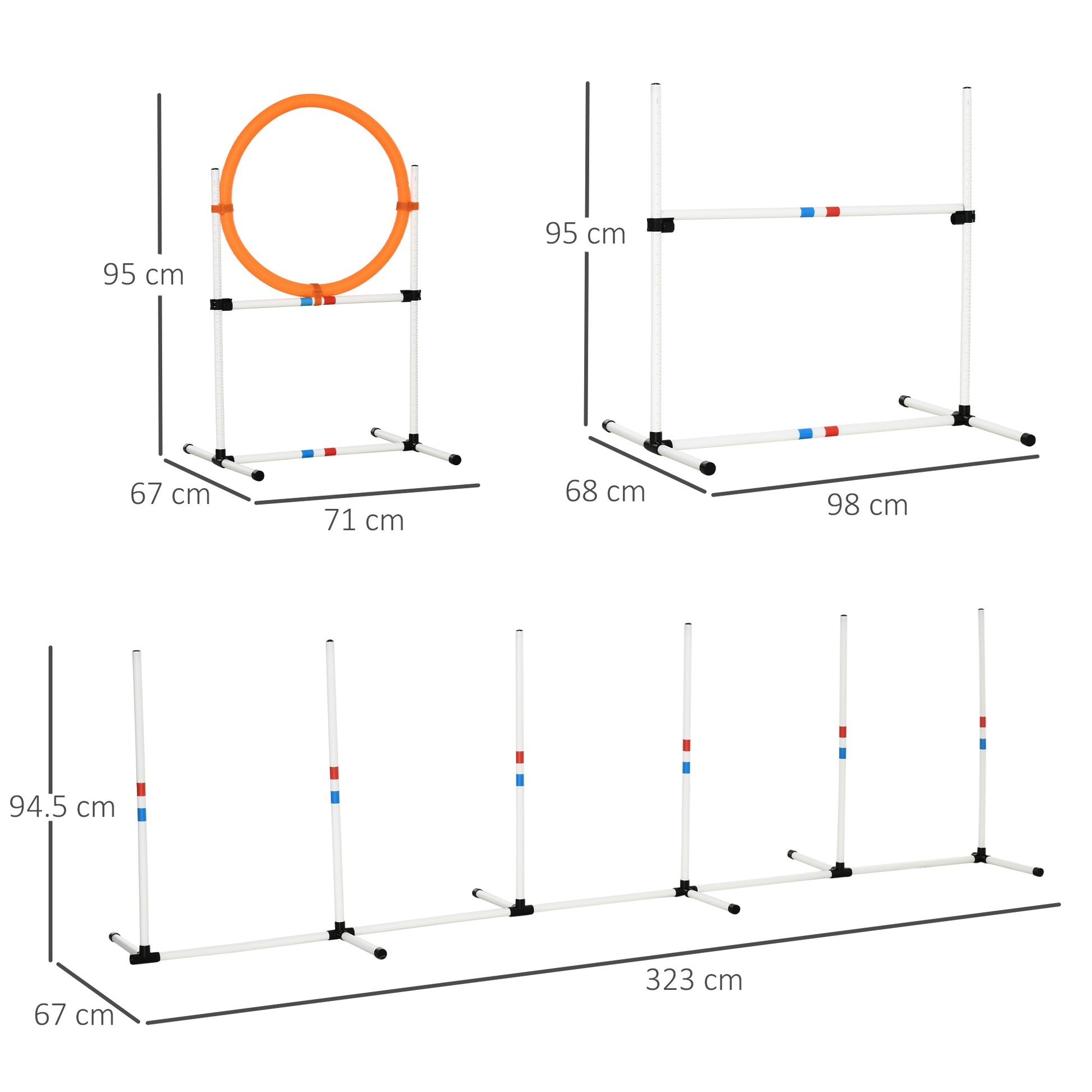 PawHut 3 Piece Pet Agility Training Equipment Dog Play Run Jump Obedience Training Set Adjustable (Pole + Hoop + Hurdle)