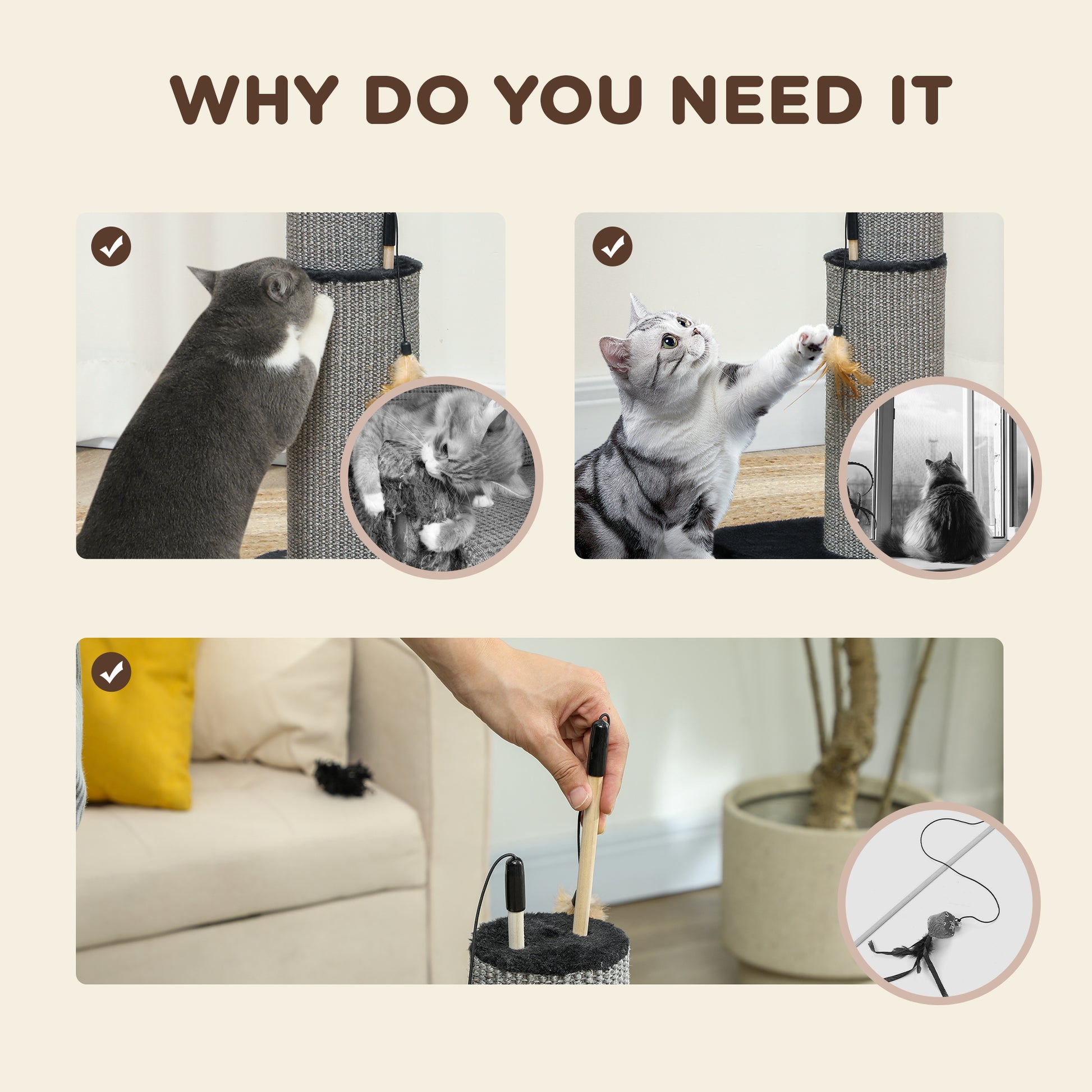 PawHut 78cm 2-in-1 Cat Scratching Post with 3 Toy Feathers, Black