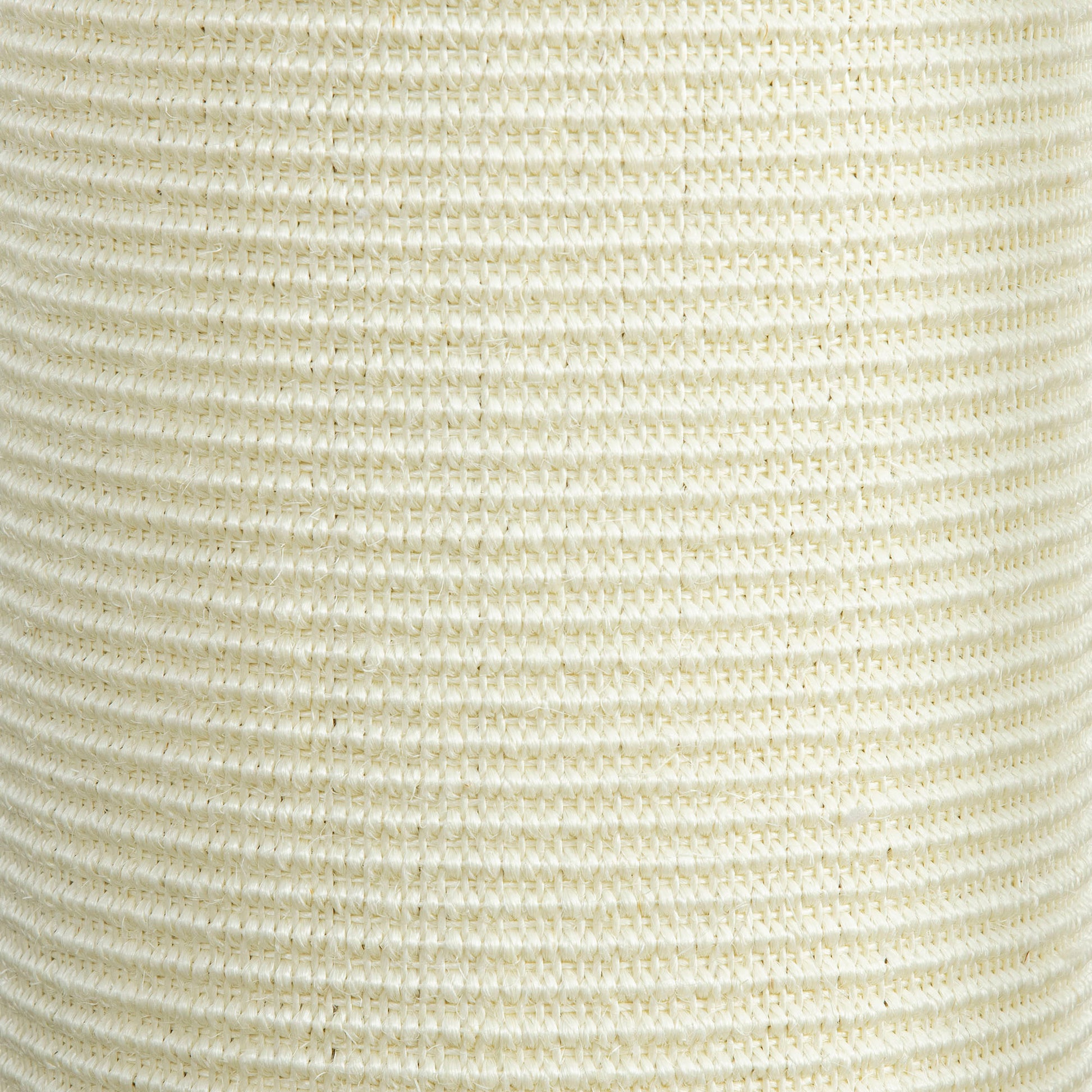 - Made of durable engineered wood, it’s wrapped with sisal rope