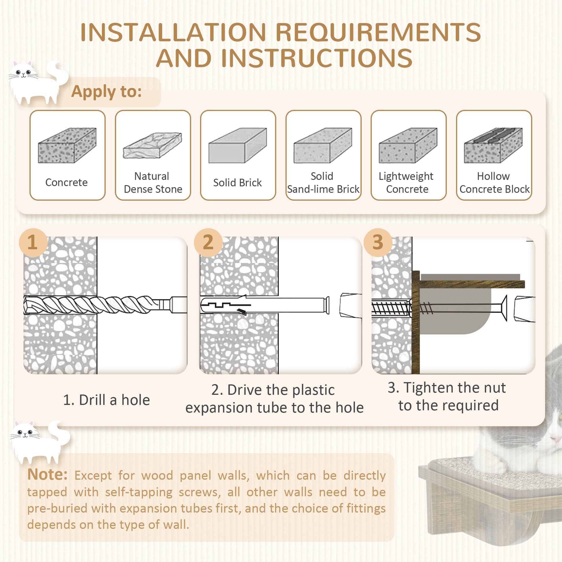 PawHut 8Pcs Wall Mounted Cat Tree with Scratching Posts, Perches, Ladder, for Sleeping, Playing, Lounging - Brown